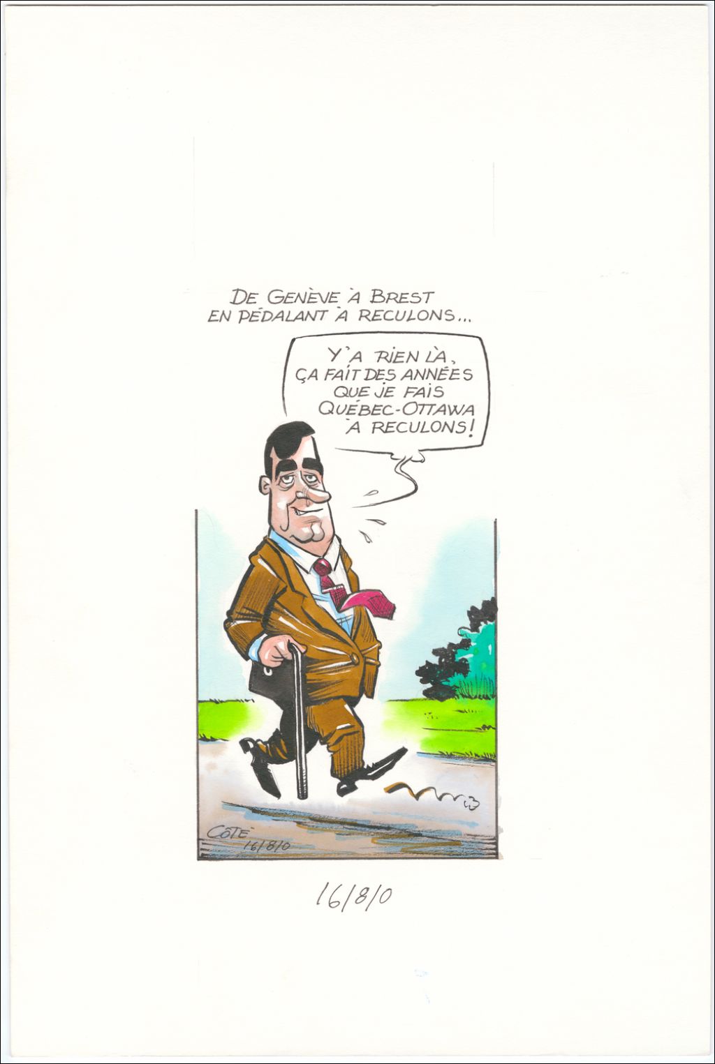 De Genève à Brest en pédalant à reculons… [Lucien Bouchard] : « Y'a rien là, ça fait des années que je fais Québec-Ottawa à reculons ! »