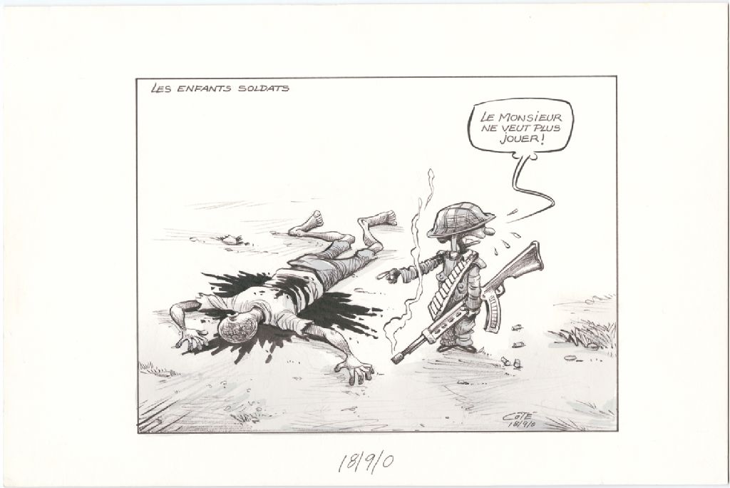 Les enfants soldats [Enfant soldat] : « Le monsieur ne veut plus jouer ! », 18 septembre 2000, Archives nationales à Québec, Fonds André-Philippe Côté, (03Q,P687,S1,P2000-09-18), André-Philippe Côté.