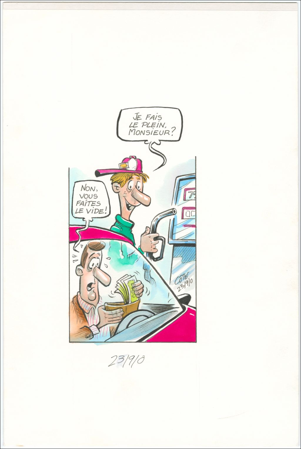 [Pompiste] : « Je fais le plein, monsieur ? » [Homme] : « Non, vous faites le vide ! »