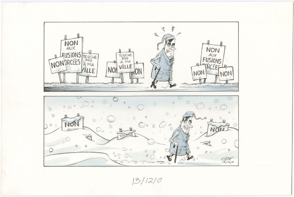 [Lucien Bouchard et les fusions municipales], 13 décembre 2000, Archives nationales à Québec, Fonds André-Philippe Côté, (03Q,P687,S1,P2000-12-13), André-Philippe Côté.