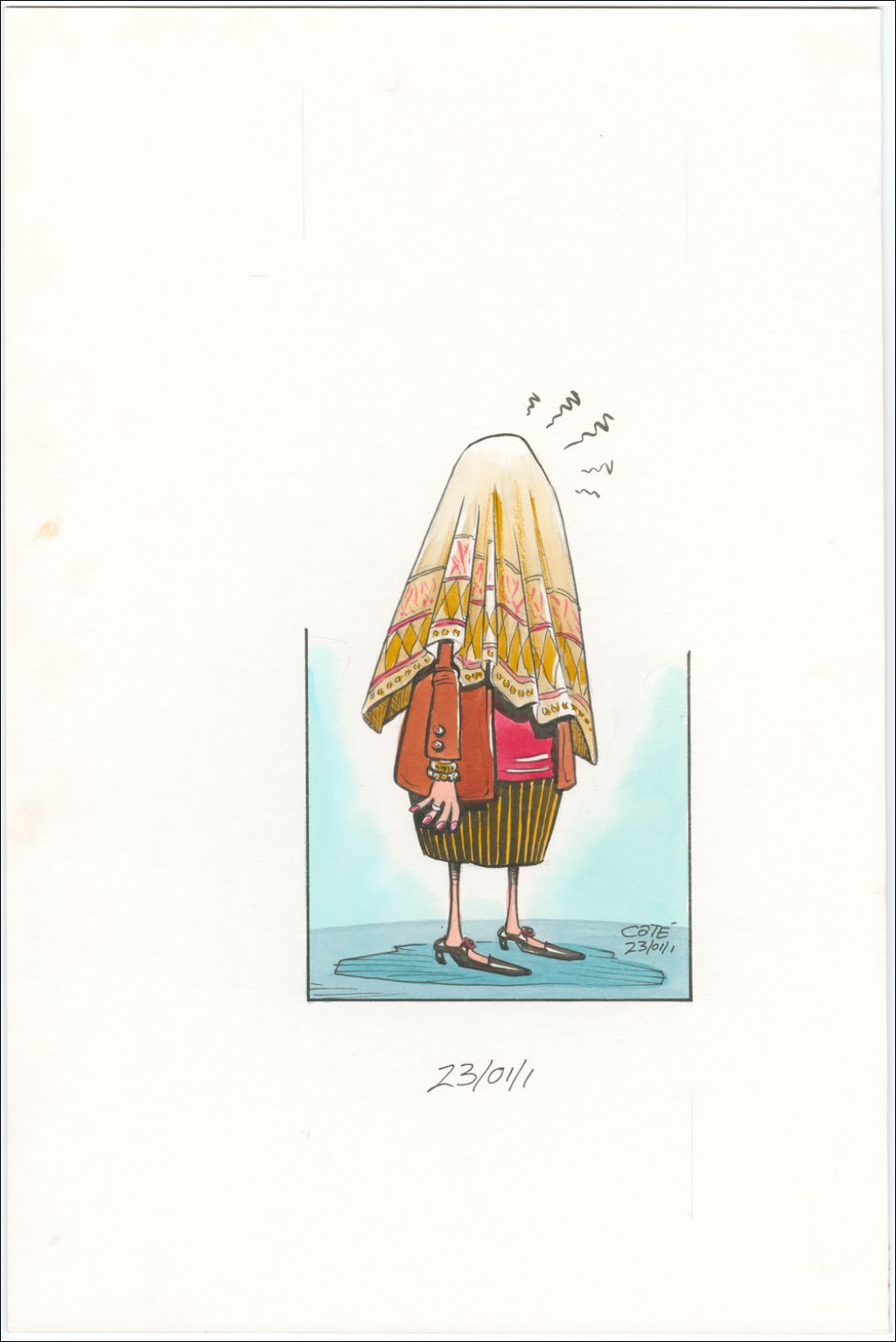 [Une femme a un drap sur la tête], 23 janvier 2001, Archives nationales à Québec, Fonds André-Philippe Côté, (03Q,P687,S1,P2001-01-23), André-Philippe Côté.