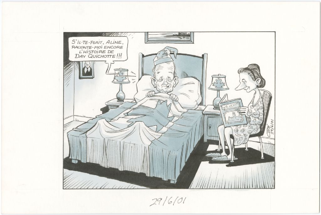 S'il-te-plaît, Aline, raconte-moi encore l'histoire de Day Quichotte, 29 juin 2001, Archives nationales à Québec, Fonds André-Philippe Côté, (03Q,P687,S1,P2001-06-29-1), André-Philippe Côté.