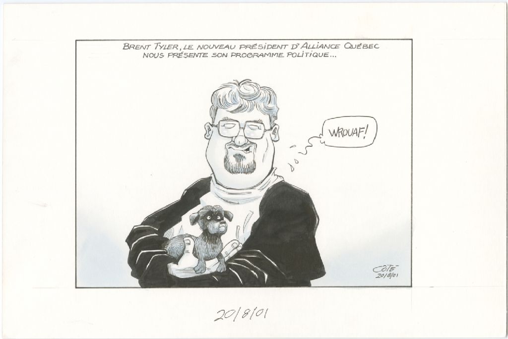Brent Tyler, le nouveau président d'Alliance Québec nous présente son programme politique, 20 août 2001, Archives nationales à Québec, Fonds André-Philippe Côté, (03Q,P687,S1,P2001-08-20-1), André-Philippe Côté.