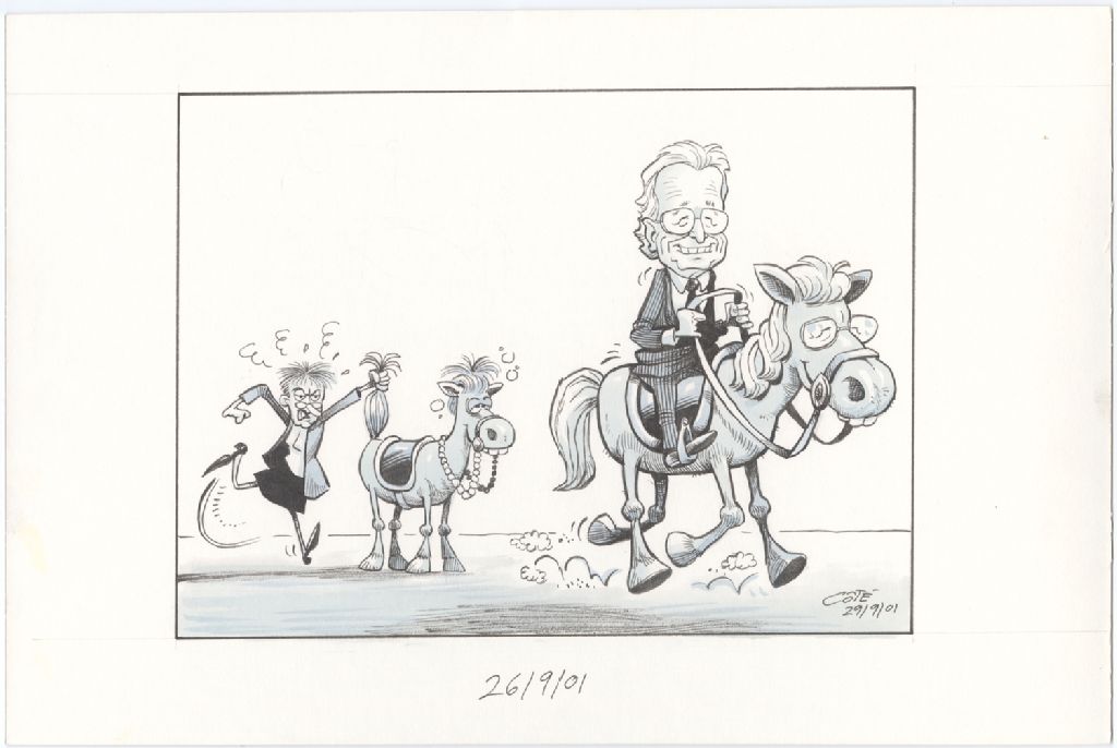 [Jean-Paul L'Allier à cheval], 26 septembre 2001, Archives nationales à Québec, Fonds André-Philippe Côté, (03Q,P687,S1,P2001-09-26), André-Philippe Côté.