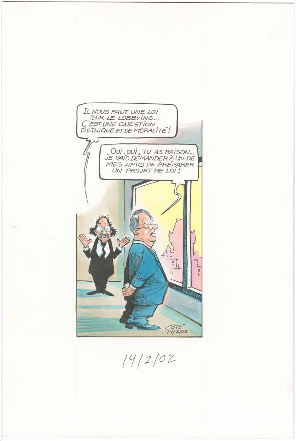 [Homme] : « Il nous faut une loi sur le lobbying… c'est une question d'éthique et de moralité ! », 14 février 2002, Archives nationales à Québec, Fonds André-Philippe Côté, (03Q,P687,S1,P2002-02-14), André-Philippe Côté.