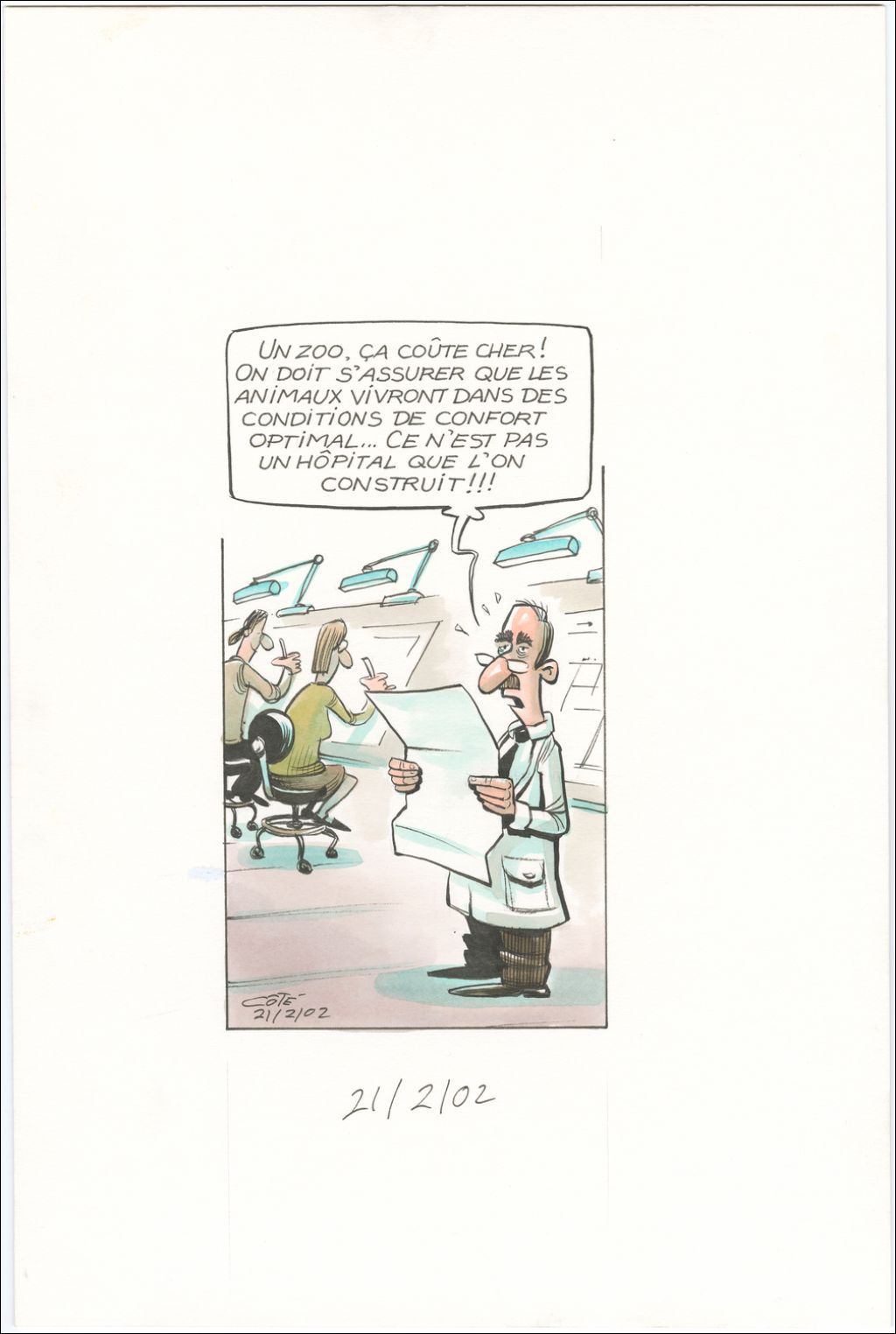[Homme] : « Un zoo, ça coûte cher ! On doit s'assurer que les animaux vivront dans des conditions de confort optimal… Ce n'est pas un hôpital que l'on construit !!! »