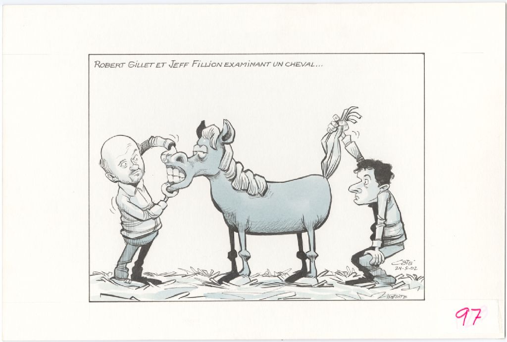 Robert Gillet et Jeff Fillion examinant un cheval