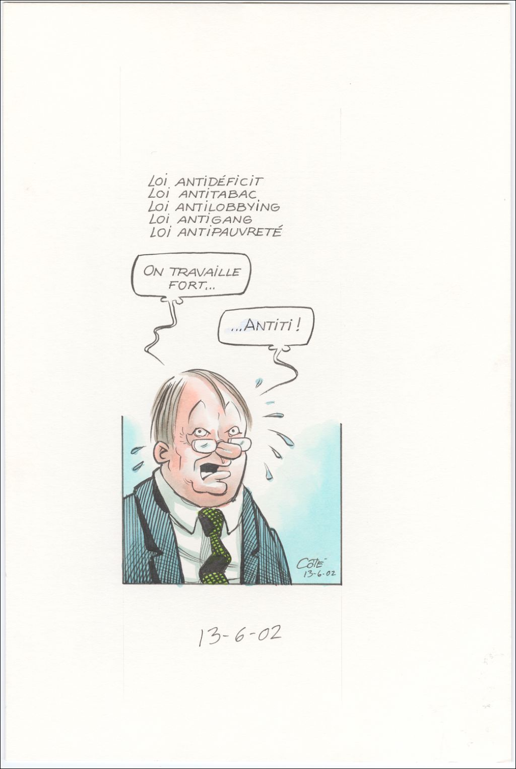 Loi anti déficit, Loi anti tabac, Loi Anti lobbying, Loi Anti gang, Loi anti pauvreté, 13 juin 2002, Archives nationales à Québec, Fonds André-Philippe Côté, (03Q,P687,S1,P2002-06-13), André-Philippe Côté.