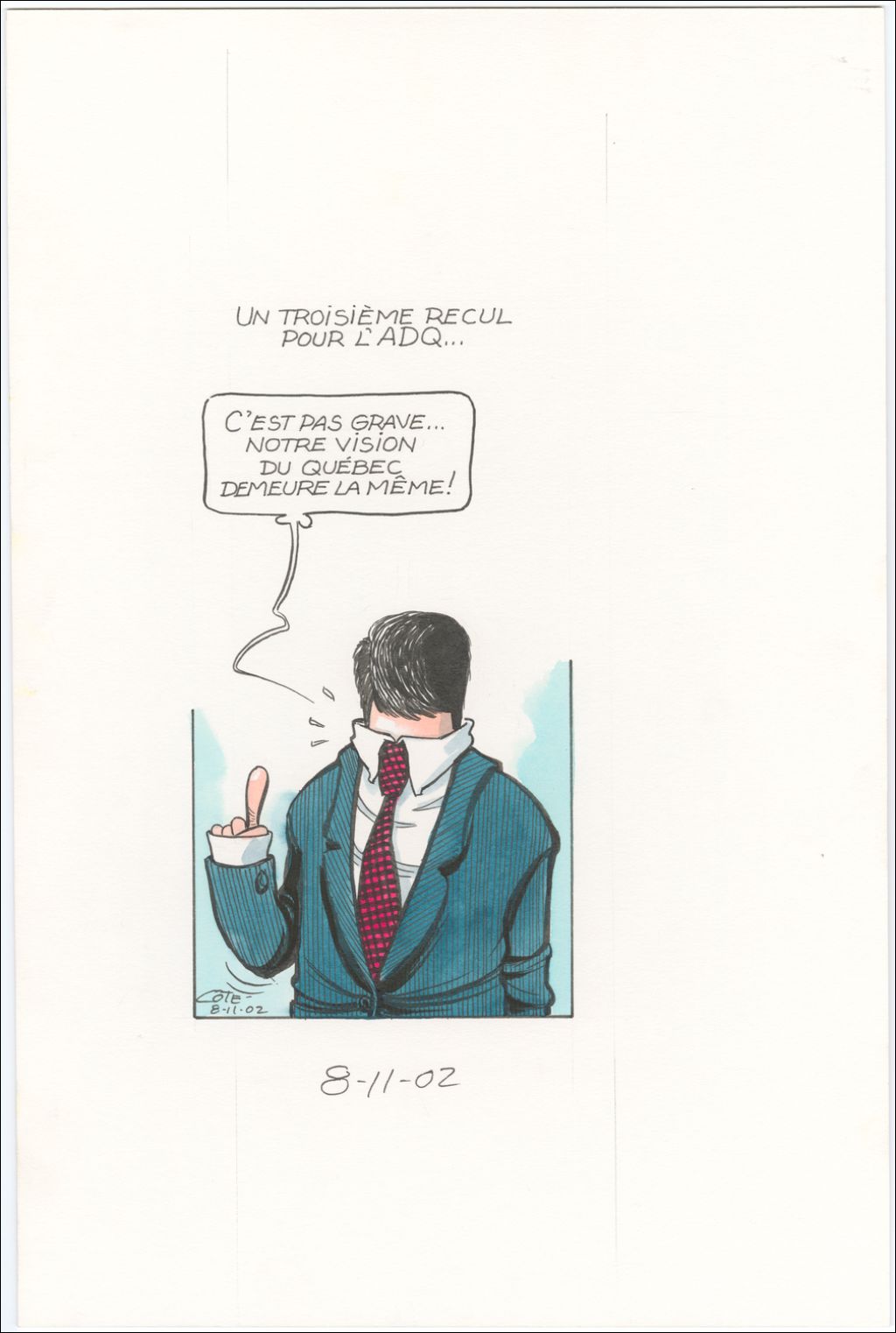 Un troisième recul pour l'ADQ, 8 novembre 2002, Archives nationales à Québec, Fonds André-Philippe Côté, (03Q,P687,S1,P2002-11-08-1), André-Philippe Côté.