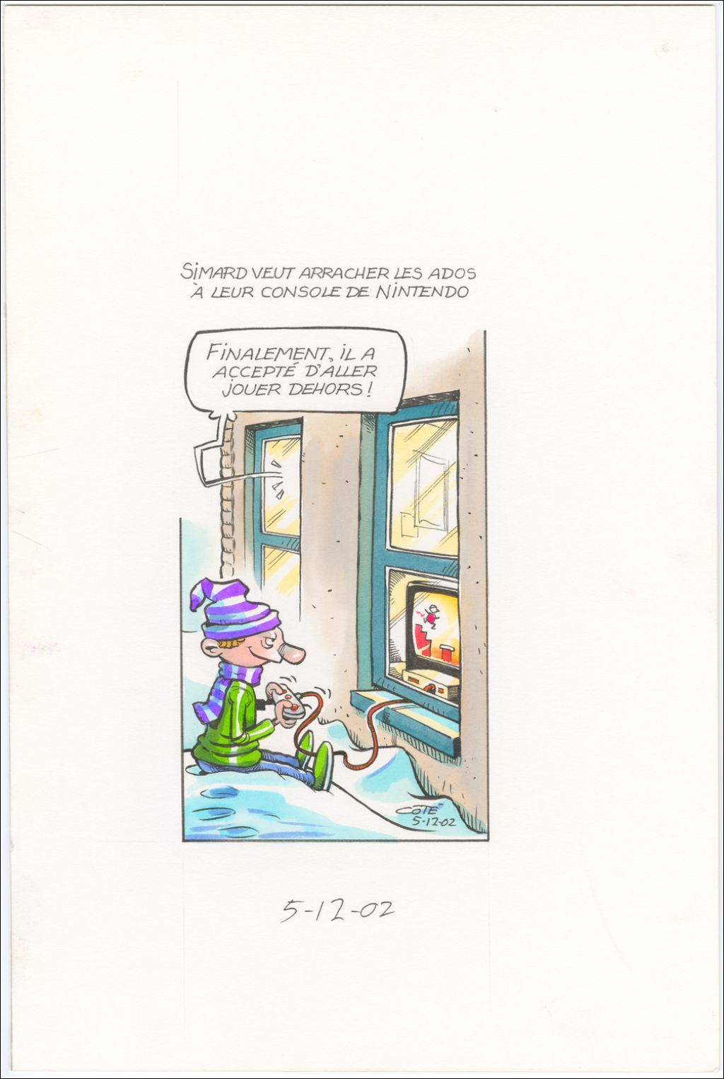 [Sylvain] Simard veut arracher les ados à leur conseile de Nintendo, 5 décembre 2002, Archives nationales à Québec, Fonds André-Philippe Côté, (03Q,P687,S1,P2002-12-05), André-Philippe Côté.