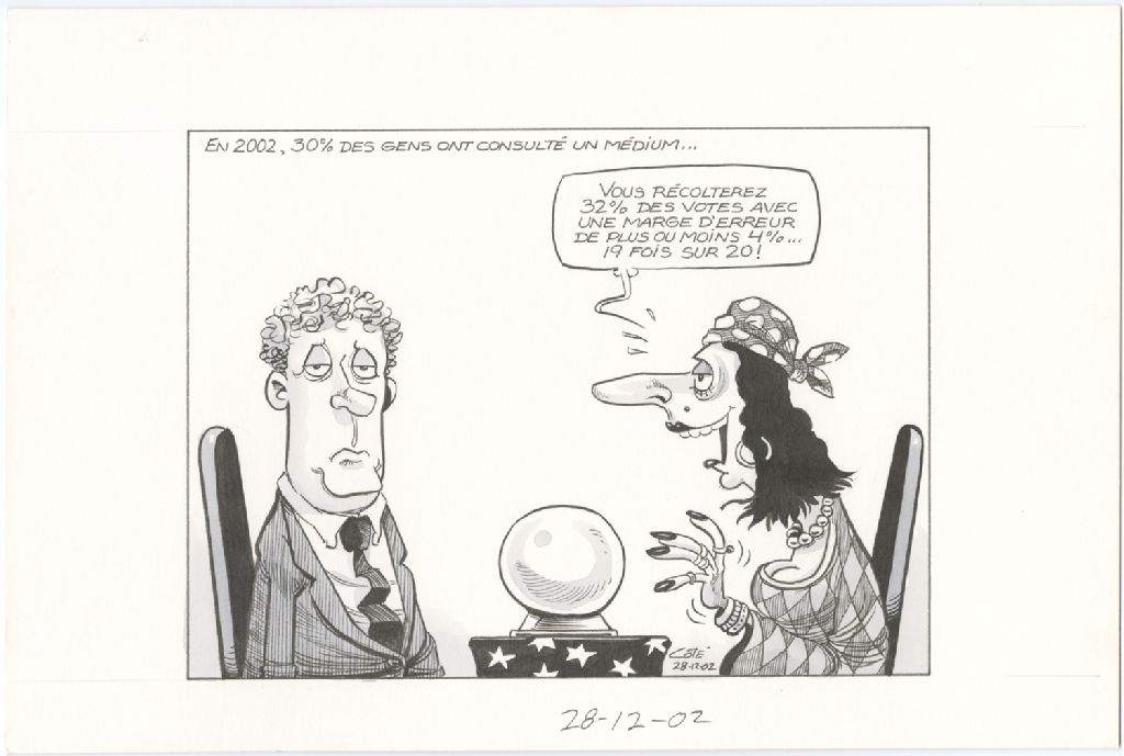 En 2002, 30% des gens ont consulté un médium, 28 décembre 2002, Archives nationales à Québec, Fonds André-Philippe Côté, (03Q,P687,S1,P2002-12-28), André-Philippe Côté.
