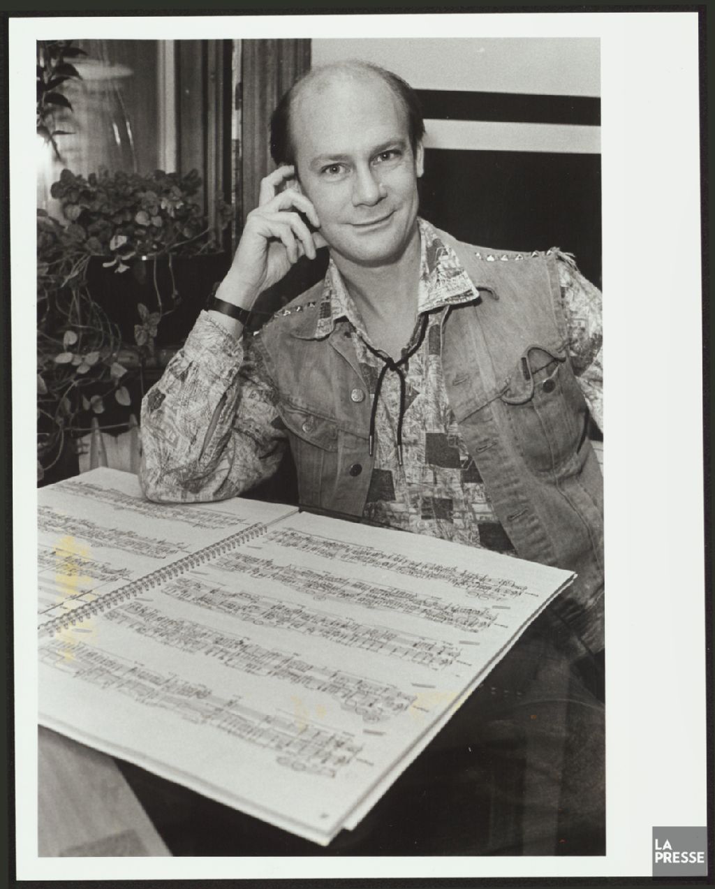 - Le dossier illustre Michel-George Brégent devant la partition de son «Trad-Sens Concertio»