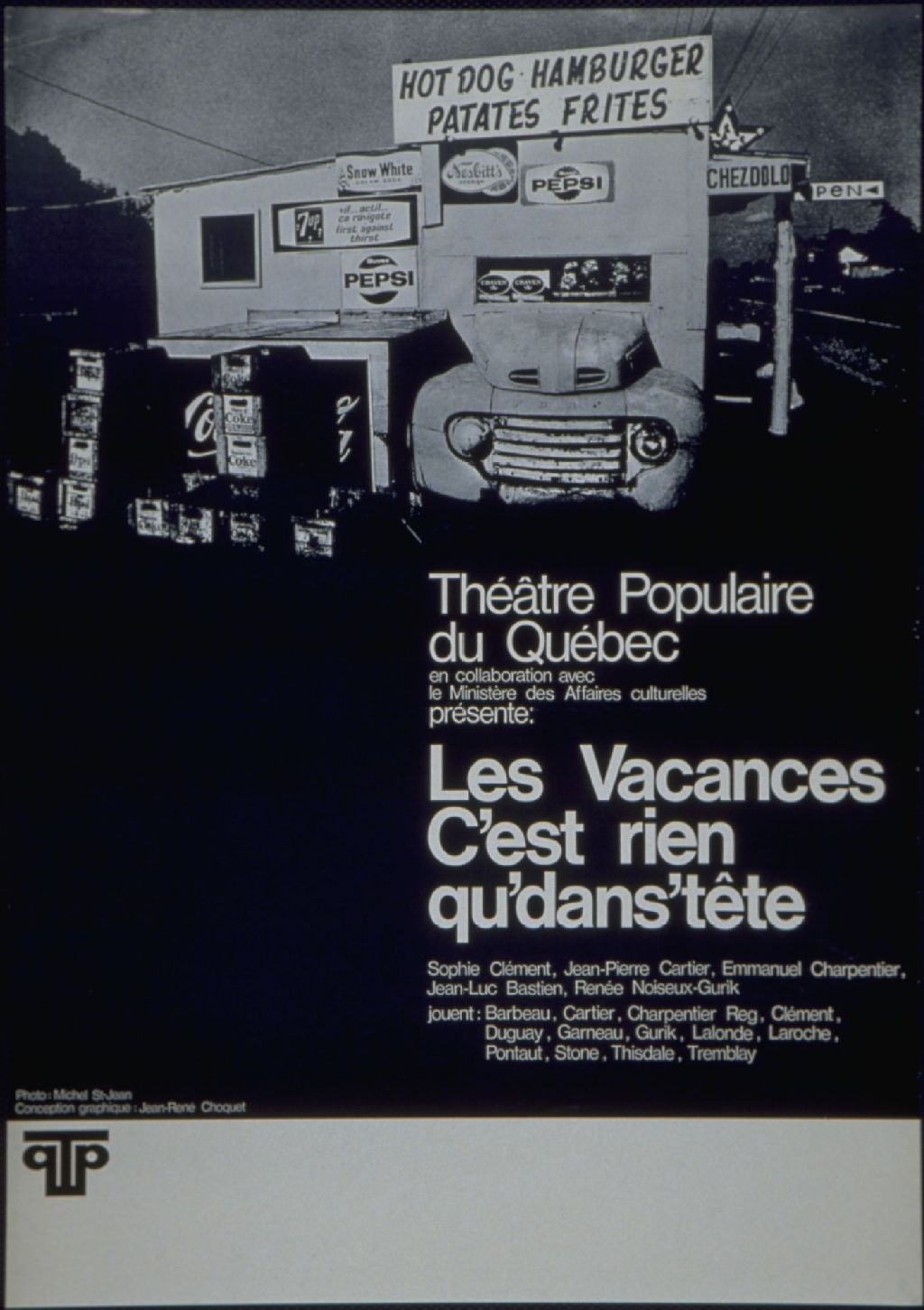 Théâtre populaire du Québec en collaboration avec le Ministère des affaires culturelles présente Les vacances c'est rien qu'dans'tête