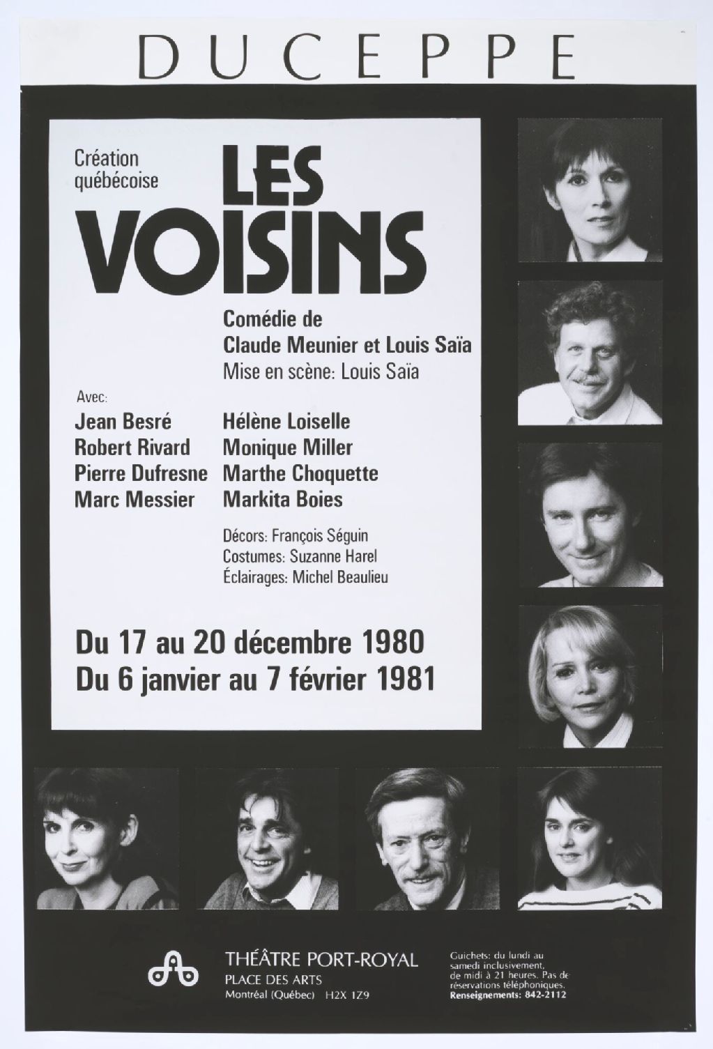 Les voisins, comédie de Claude Meunier et Louis Saïa, mise en scène Louis Saïa création québécoise