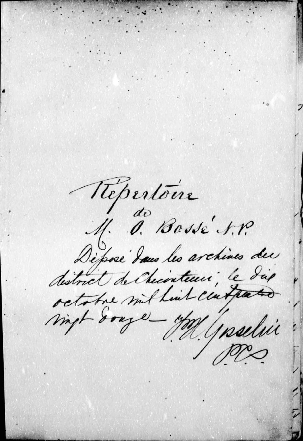 Maurice-Ovide Bossé, 1884-1920, Archives nationales à Saguenay, Fonds Cour supérieure. District judiciaire de Chicoutimi. Greffes de notaires, (02C,CN201,S1).