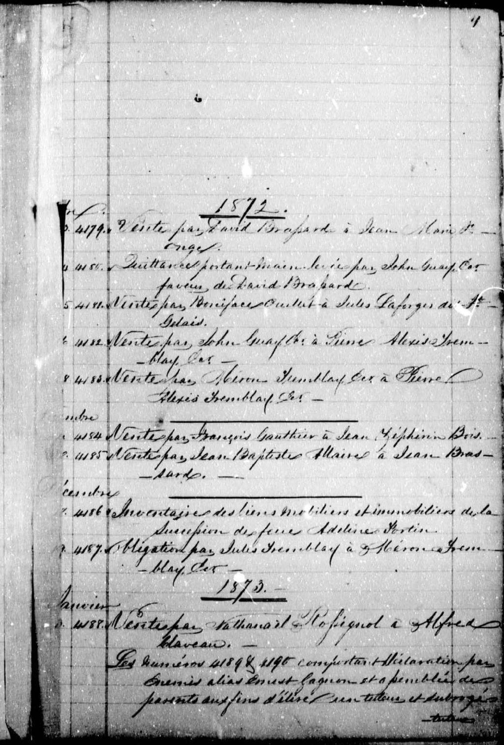 - Cette série regroupe une partie des minutes notariales du greffe de Jean Gagné, elle comprend les actes 4179 à 5774 (pièces numérotées conservées dans des chemises numérotées). Les répertoires et index originaux sont conservés au centre de Bibliothèque et Achives nationales du Québec à Québec qui détient la première partie des minutes.Prises dans leur ensemble, les données colligées dans ces documents officiels à contenu administratif et légal peuvent constituer une source documentaire des plus révélatrices sur le mode et les conditions de vie de la population pendant cette période (métiers et professions mentionnés aux contrats, inventaires de biens, testaments), sur les classes sociales (mention de titres correspondant au rang social des parties concernées tels bourgeois, écuyer, etc), sur les moeurs et coutumes acceptées par la société et ses institutions (par le biais de déclarations, de jugement arbitral, d'injonctions, d [...]