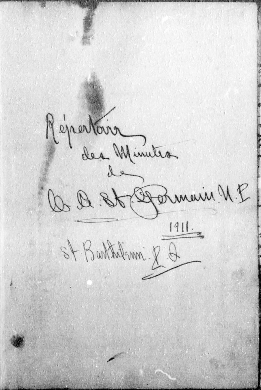 - Cette série comprend des minutes notariales (numérotées de 1 à 719), un index et un répertoire du greffe de Charles-Alphonse Saint-Germain. Les minutes 1 à 443 (1911 à 1916) touchent la région de Saint-Barthélémi (Comté de Berthier); de 1916 à 1921 le notaire Saint-Germain ne pratique pas. Il recommence sa pratique à Hull en 1921 et y pratique jusqu'en 1926 (minutes 444 à 718). Un dernier acte est fait en 1928 à Thurso (minute 719).Outre les informations spécifiques aux parties impliquées dans chacun des contrats consignés dans ce greffe, lesquelles peuvent être utilisées, entre autres, dans le cadre de recherches à caractère généalogique, ces derniers documents reflètent les activités commerciales et immobilières de la région de Hull au début du XXe siècle et dans une moindre mesure, l'apprentissage des professions libérales à cette époque. D'autre part, prises dans leur ensemble, les données colligées dans ces documents officiels à contenu administratif et légal peuvent également constituer une source documentaire des plus révélatrices sur le mode et les conditions de vie de la population (métiers et professions mentionnés aux contrats, inventaires de biens, testaments). Enfin, la terminologie utilisée dans ces contrats notariés pourrait être avantageusement récupérée dans le cadre d'études portant sur l'évolution du langage administratif et légal, voire même sur l'évolution de la langue française