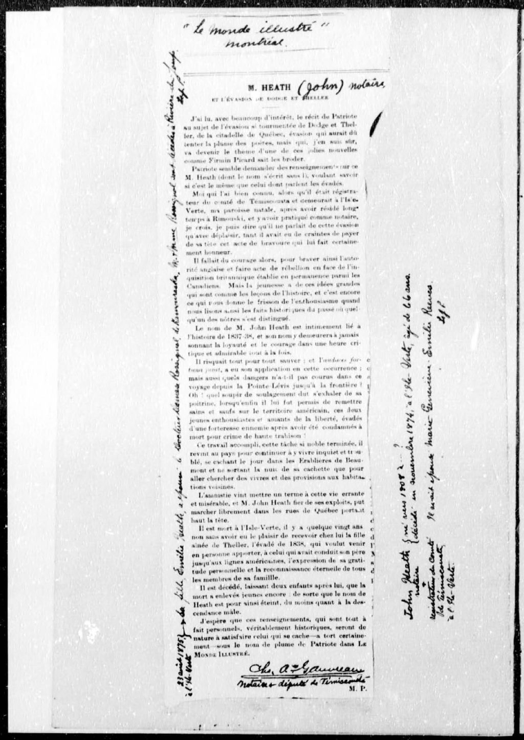 John Heath, 1834-1873, Archives nationales à Rimouski, Fonds Cour supérieure. District judiciaire de Kamouraska. Greffes de notaires, (01R,CN104,S46).