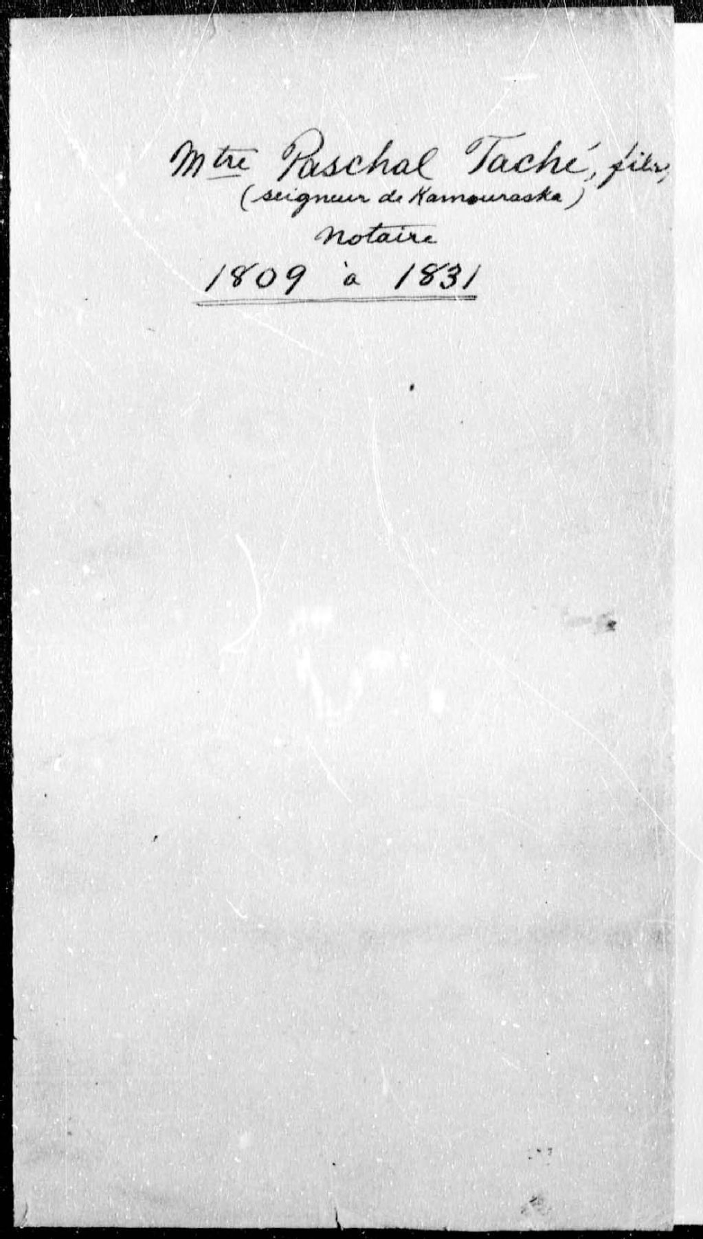 Pascal Taché, 1809-1831, Archives nationales à Rimouski, Fonds Cour supérieure. District judiciaire de Kamouraska. Greffes de notaires, (01R,CN104,S58).