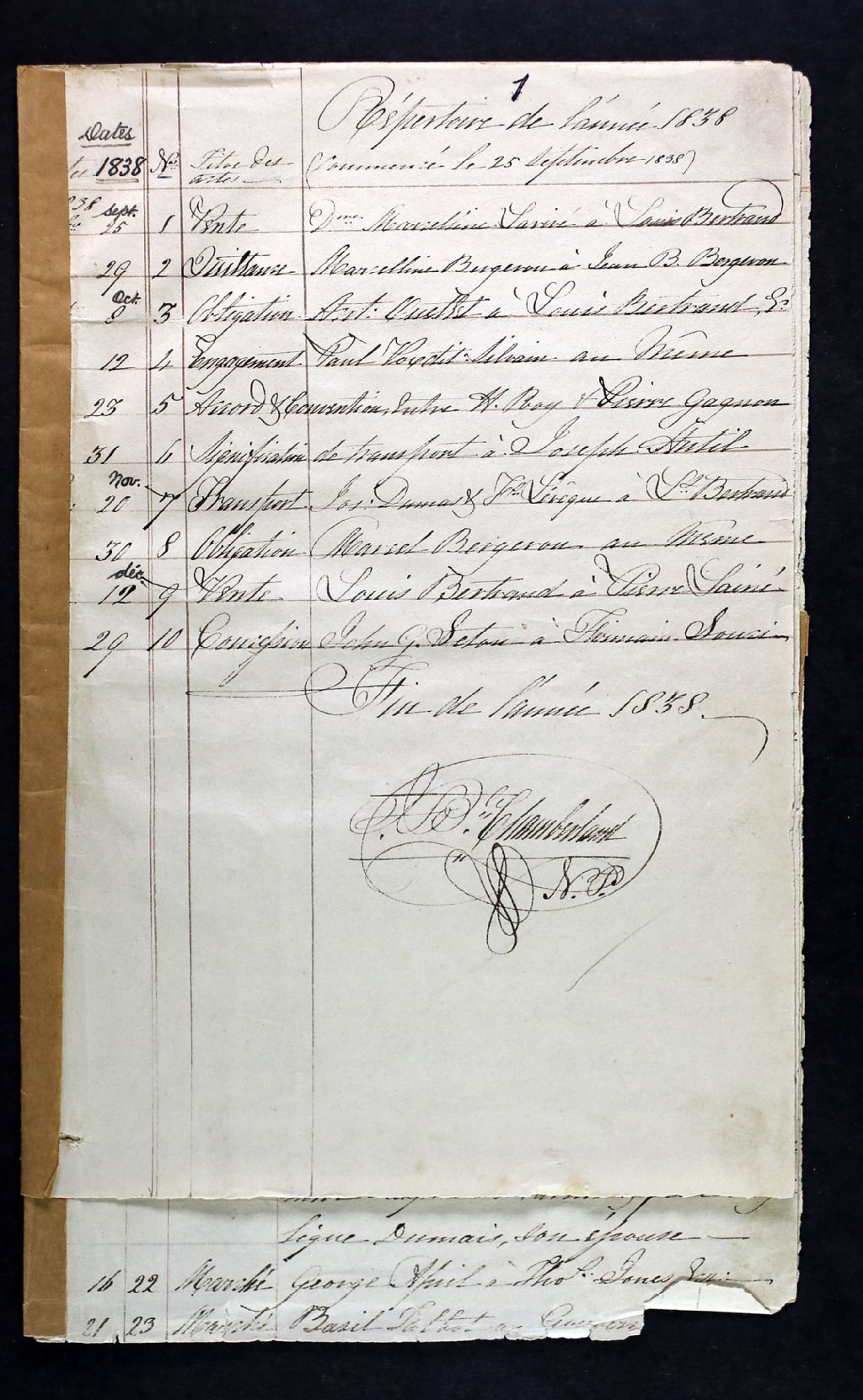 Jean-Baptiste Chamberland, 1838-1895, Archives nationales à Rimouski, Fonds Cour supérieure. District judiciaire de Kamouraska. Greffes de notaires, (01R,CN104,S65).