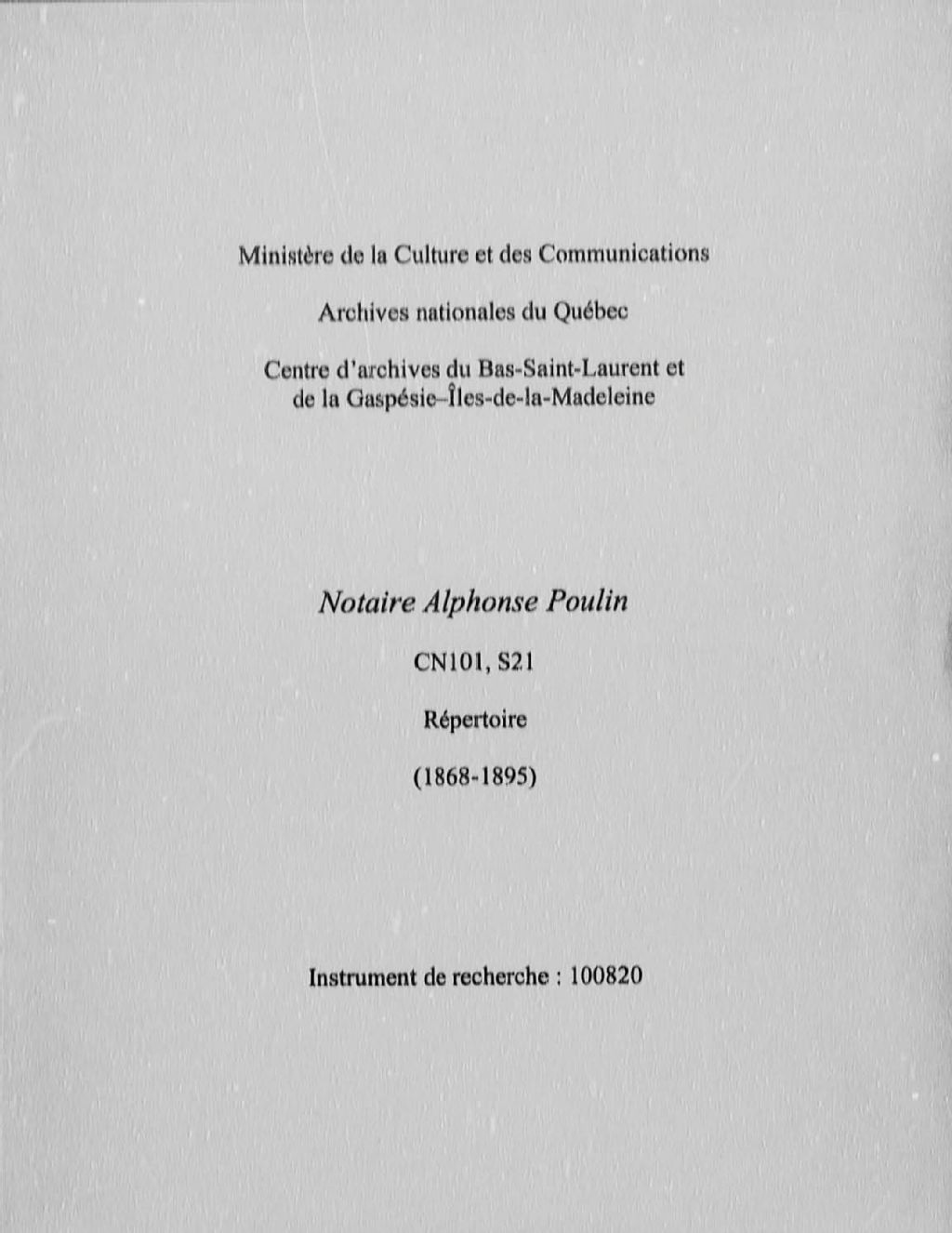 - Cette série témoigne de la vie quotidienne d'une partie de la population établie sur le territoire du Bas-Saint-Laurent et des actes légaux enregistrés chez le notaire Alphonse Poulin. La vie économique et les moeurs et coutumes du XIXe siècle dans le Bas-Saint-Laurent peuvent être étudiées à l'aide de ces documents. De plus, les liens familiaux décrits dans les actes peuvent aisément servir pour des études généalogiques. Ces minutes notariales sont majoritairement issues de la région de Saint-Germain-de-Rimouski.Enfin, on peut aussi retracer quelques références à des familles importantes de propriétaires terriens de ces régions.Cette série comprend une sous-série des actes notariés contenant 2648 minutes notariales, une sous-série pour le répertoire et une sous-série pour les index. Le répertoire est relié en une seule pièce et regroupe toutes les minutes notariales d'Alphonse Poulin. Les documents se présentent sous une forme normalisée, c'est-à-dire selon un modèle sériel qui renferme des informations sur les parties en présence et sur la nature de l'entente contractée