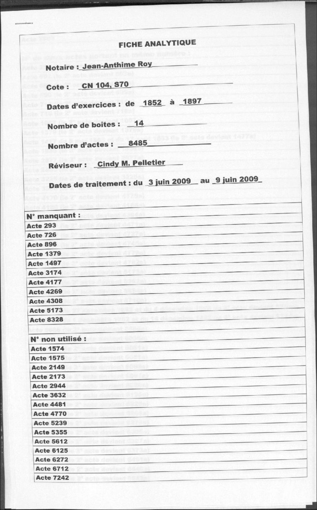 Jean-Anthime Roy, 1852-1897, Archives nationales à Rimouski, Fonds Cour supérieure. District judiciaire de Kamouraska. Greffes de notaires, (01R,CN104,S70).