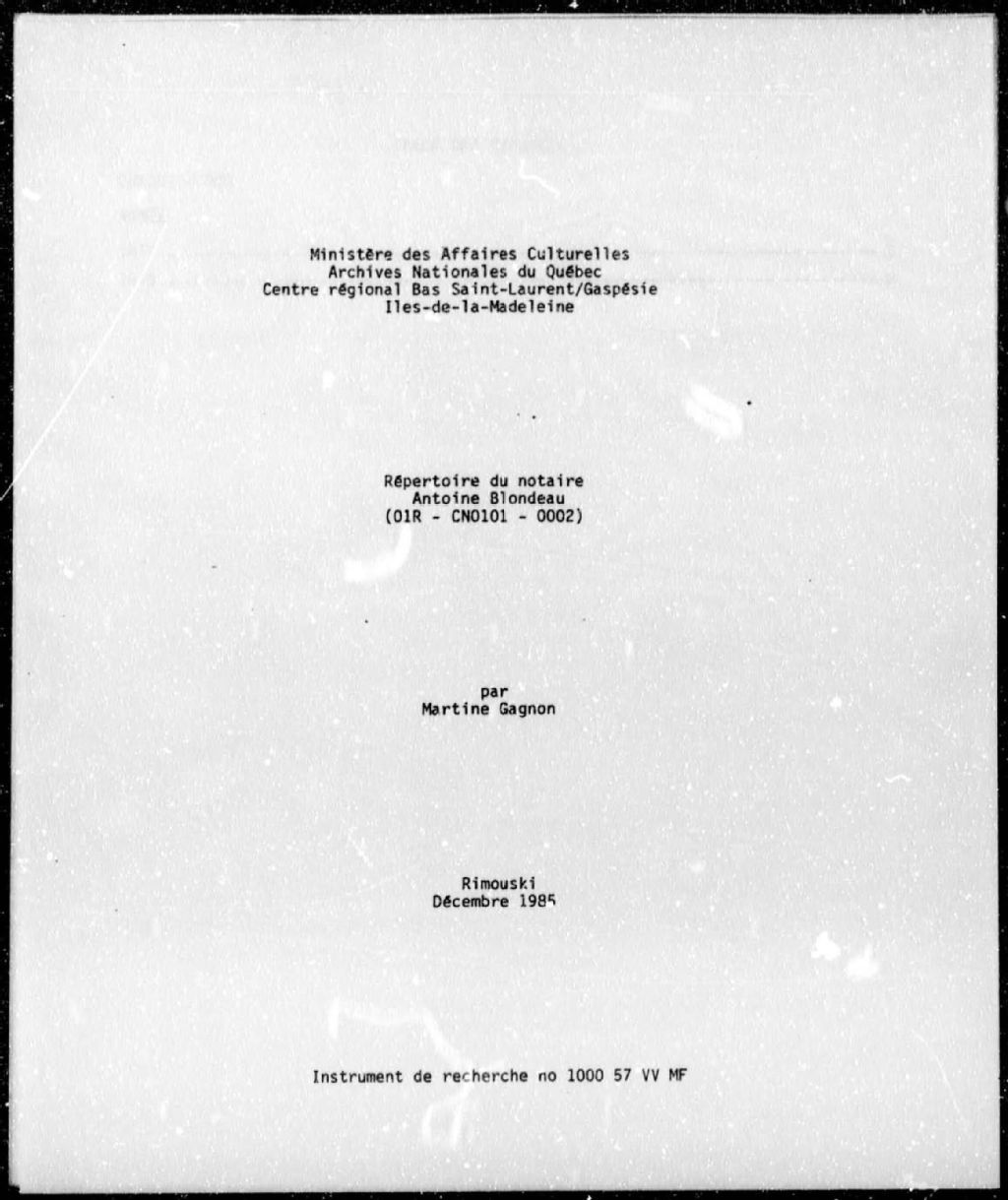 Cette série témoigne de la vie quotidienne d'une partie de la population établie sur le territoire du Bas-Saint-Laurent et des actes légaux enregistrés chez le notaire Antoine Blondeau. La vie économique et rurale, les moeurs et coutumes du XIXe siècle dans le Bas-Saint-Laurent peuvent être étudiés à l'aide de ces documents. Ces minutes notariales sont majoritairement issues de la région de Kamouraska et de ses environs, pour une part, et des régions de Québec et de Rimouski d'autre part. Plusieurs documents font référence à une famille importante de la région, les Lepage.Cette série comprend une sous-série des actes notariés contenant 114 minutes notariales. Les documents se présentent sous une forme normalisée, c'est-à-dire, selon un modèle sériel qui renferme des informations sur les parties en présence et sur la nature de l'entente contractée