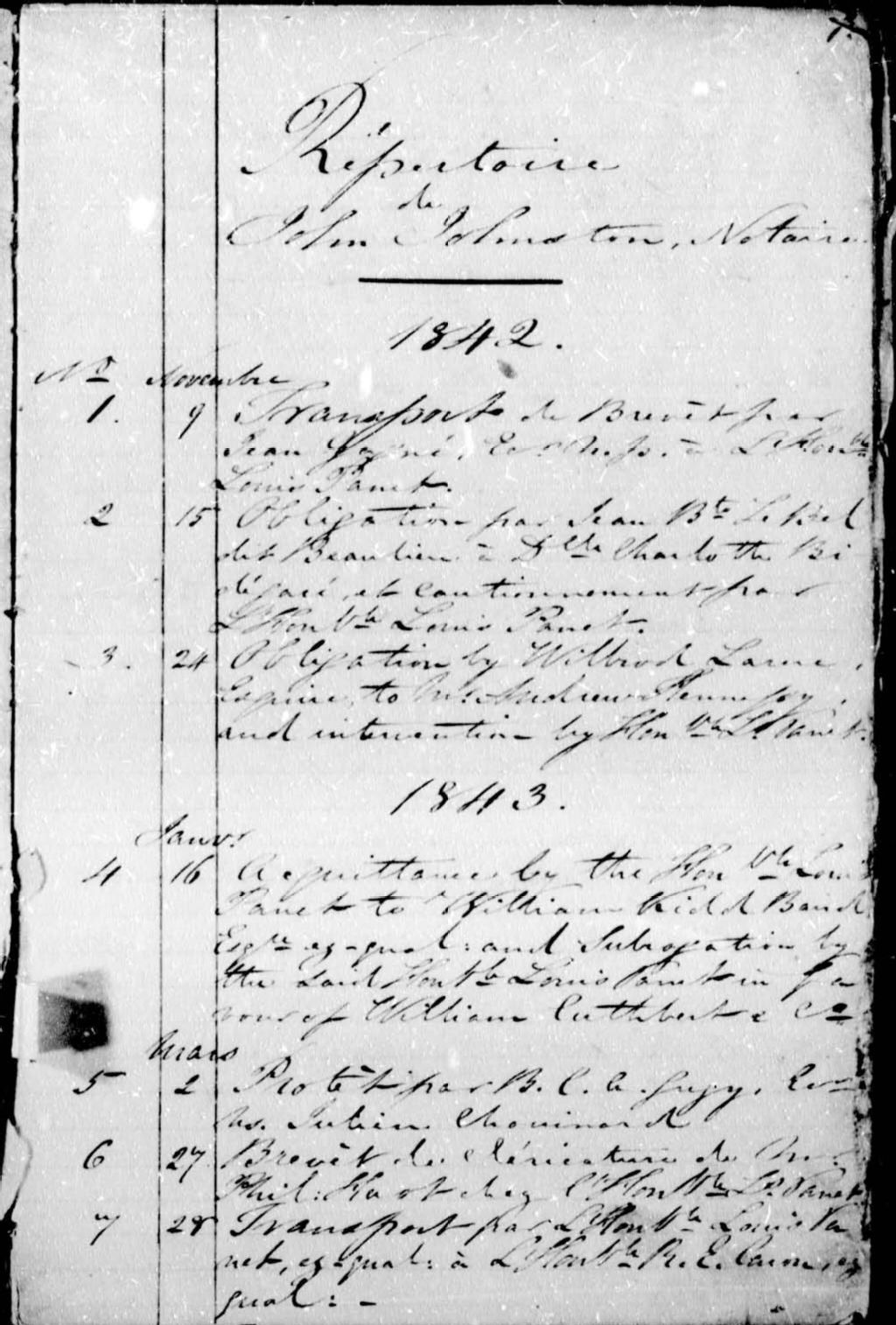 - Cette série regroupe les minutes notariales du greffe du notaire John Johnston (3216 pièces numérotées) et deux (2) répertoires originaux pertinents.Outre les informations spécifiques aux parties impliquées dans chacun des contrats consignés dans ce greffe, lesquelles peuvent être utilisées, entre autre, dans le cadre de recherches à caractère généalogique, cette série constitue, dans un premier temps, une source documentaire intéressante sur le mode de fonctionnement de la société. D'autre part, prises dans leur ensemble, les données colligées dans ces documents officiels à contenu administratif et légal peuvent également constituer une source documentaire des plus révélatrices sur le mode et les conditions de vie de la population pendant cette période (métiers et professions mentionnés aux contrats, inventaires de biens, testaments), sur les classes sociales (mention de titres correspondant au rang social des parties concernées tels [...]