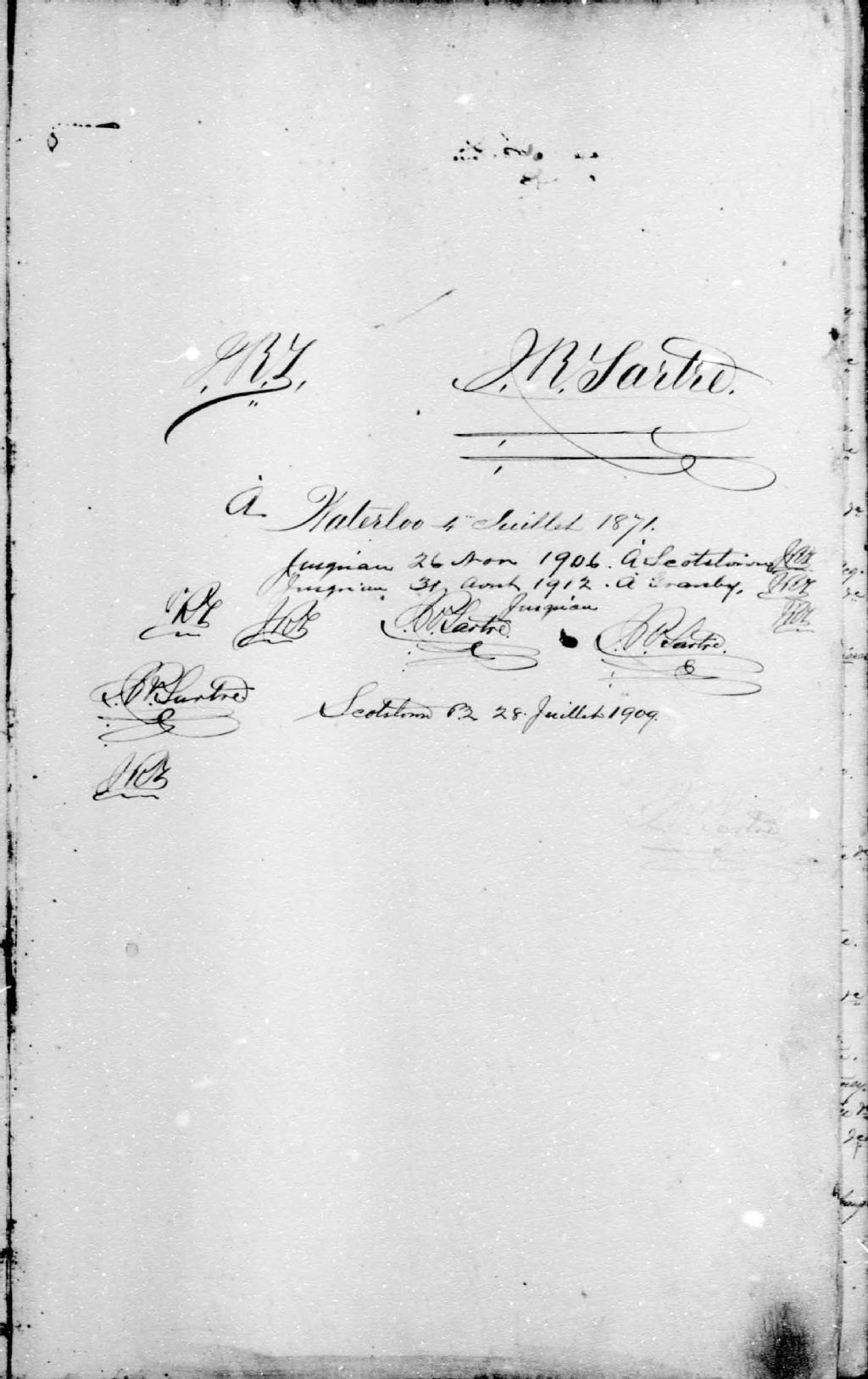 J.-Raphaël Tartre, 1871-1919, Archives nationales à Sherbrooke, Fonds Cour supérieure. District judiciaire de Bedford. Greffes de notaires, (05S,CN502,S42).