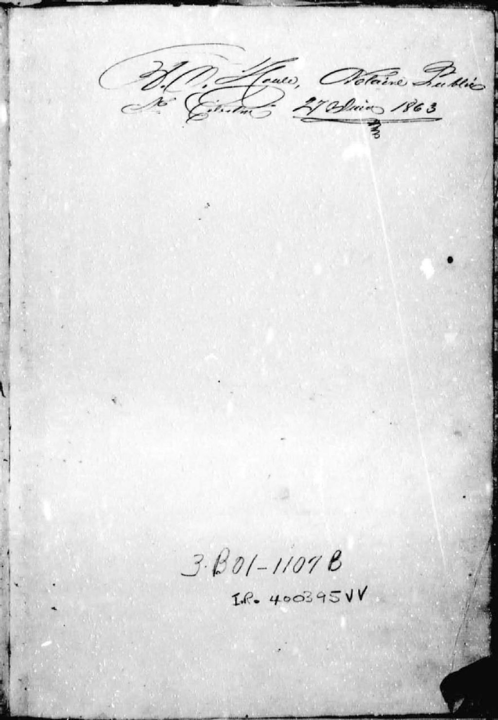 - Cette série regroupe les minutes notariales du greffe de Adolphe-Odilon Houle ainsi qu'un répertoire chronologique (du 27 juin 1863 au 21 décembre 1897 incluant un index jusqu'au 31 mars 1866) et un répertoire onomastique (du 27 juin 1863 au 23 décembre 1895). Il n'y a aucun instrument de recherche pour la période de 1898 à 1905. Les minutes sont numérotées de 1 à 8523.De 1863 à 1905, le notaire Houle a exercé successivement à Baie-du-Febvre (du 27 juin 1863 au 1 octobre 1863) et à Saint-Célestin ou Nicolet (du 15 octobre 1863 au 19 mai 1905).Prises dans leur ensemble, les données colligées dans ces documents officiels à contenu administratif et légal peuvent également constituer une source documentaire des plus révélatrices sur le mode et les conditions de vie de la population pendant cette période (métiers et professions mentionnés aux contrats, inventaires de biens, testaments), sur les classes sociales (mention de titres correspondant au rang social des parties concernées tels bourgeois, écuyer, etc), sur les moeurs et coutumes acceptées par la société et ses institutions (par le biais de déclarations, de jugement arbitral, d'injonctions, d'ordonnances, etc), et, dans une proportion moindre, sur la médecine d'époque et ses représentants.Enfin, la terminologie utilisée dans ces contrats notariés pourrait être avantageusement récupérée dans le cadre d'études portant sur l'évolution du langage administratif et légal, voire même sur l'évolution de la langue française