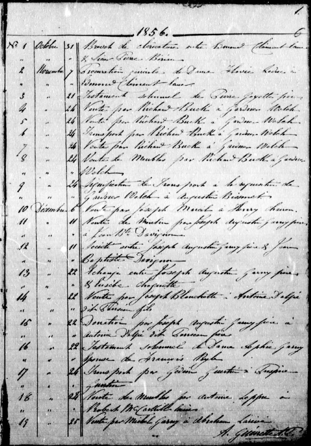 - La série constitue le prisme de la vie des populations de Farnham, L'Ange-Gardien et Weedon respectivement desservies en 1856, 1856-1865 et 1865-1885 par le notaire Adolphe Guénette. Elle témoigne de leurs activités reliées à l'occupation et à l'exploitation du milieu, au commerce et au crédit, de même que de leur niveau de vie, de leurs moeurs, coutumes et relations entretenues entre membres d'une même famille et voisins. Elle éclaire aussi indirectement sur la teneur, le poids et l'orientation de la pratique du notaire (clientèle, niveau de richesse) de même que sur la place occupée par cet officier public dans la société de l'époque.La série comprend 3359 minutes. Les contrats se présentent sous une forme normalisée, c'est-à-dire selon un modèle sériel qui donne des informations sur les parties en présence et sur la nature de l'entente contractée. Ils sont de différents types : achat de terre, contrat de mariage, donation, testament, partage de biens, inventaire après décès, vente de bien mobilier, obligation, quittance, etc. Les contrats portent un numéro croissant continu qui leur est attribué au fur et à mesure de leur préparation. Ils sont classés chronologiquement en fonction de ce numéro. L'accès aux documents est facilité par un inventaire, appelé répertoire, qui décrit chacun des actes selon leur ordre de rangement, de même que par un index, qui renvoie au numéro d'un acte à partir du nom des parties impliquées dans celui-ci