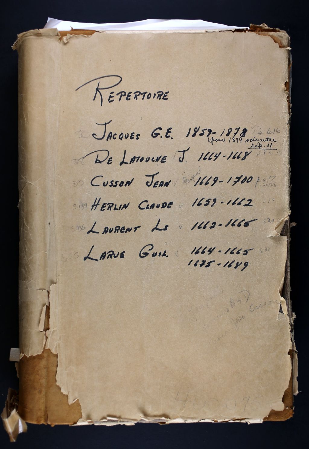 - Cette série regroupe 429 pièces judiciaires et notariales du greffe de Jacques de Latouche ainsi qu'un répertoire chronologique. De 1664 à 1669, le notaire De Latouche a exercé à Cap-de-la-Madeleine (du 11 août 1664 au 29 mai 1669).Prises dans leur ensemble, les données colligées dans ces documents officiels à contenu administratif et légal peuvent constituer une source documentaire des plus révélatrices sur le mode et les conditions de vie de la population pendant cette période (métiers et professions mentionnés aux contrats, inventaires de biens, testaments), sur les classes sociales (mention de titres correspondant au rang social des parties concernées tels bourgeois, écuyer, etc), sur les moeurs et coutumes acceptées par la société et ses institutions (par le biais de déclarations, de jugement arbitral, d'injonctions, d'ordonnances, etc), et, dans une proportion moindre, sur la médecine d'époque et ses représentants.Enfin, la [...]