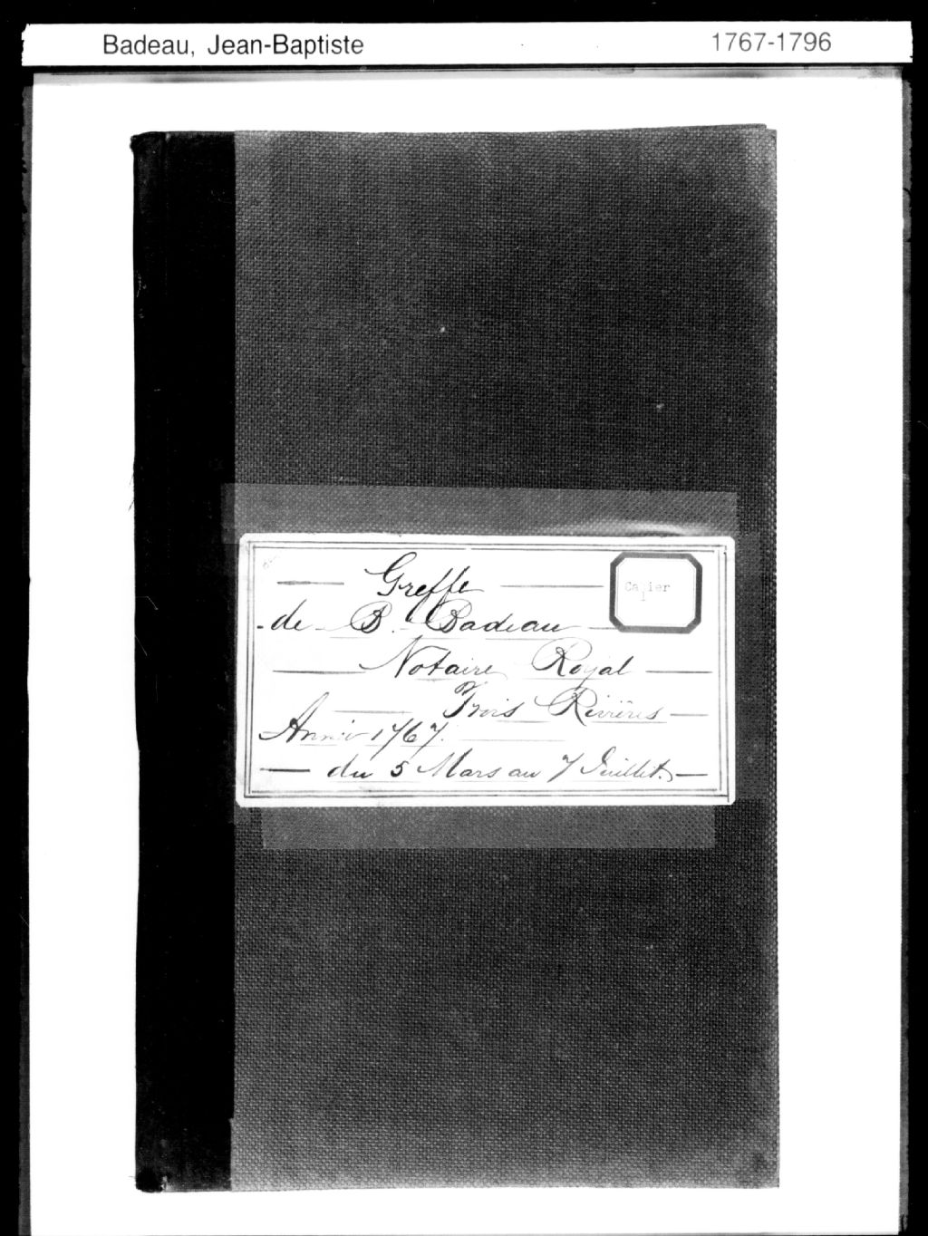 Jean-Baptiste Badeaux, 1763-1803, surtout 1767-1796, Archives nationales à Trois-Rivières, Fonds Cour Supérieure. District judiciaire de Trois-Rivières. Greffes de notaires, (04T,CN401,S5).