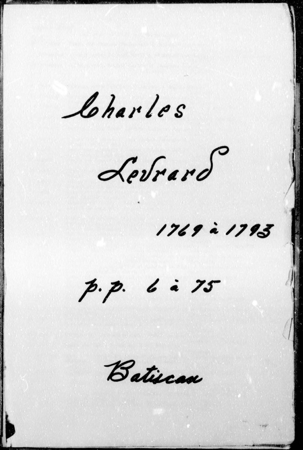 Charles Levrard, 1771-1793, Archives nationales à Trois-Rivières, Fonds Cour Supérieure. District judiciaire de Trois-Rivières. Greffes de notaires, (04T,CN401,S61).