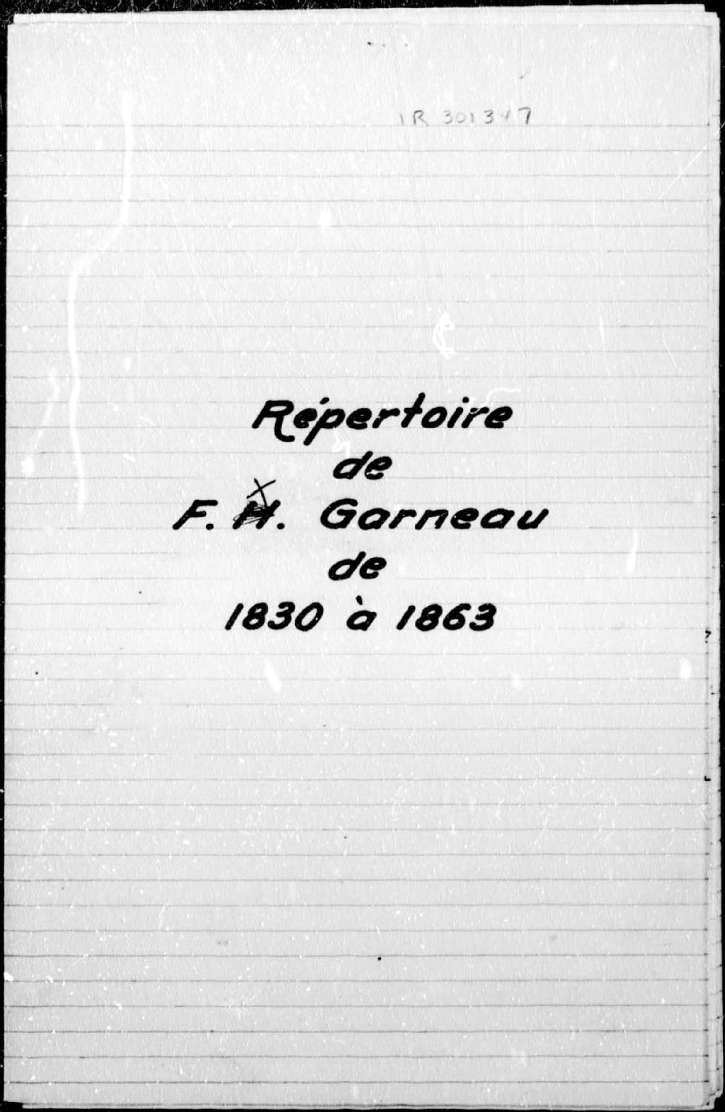 François-Xavier Garneau, 1830-1863, Archives nationales à Québec, Fonds Cour supérieure. District judiciaire de Québec. Greffes de notaires, (03Q,CN301,S109).