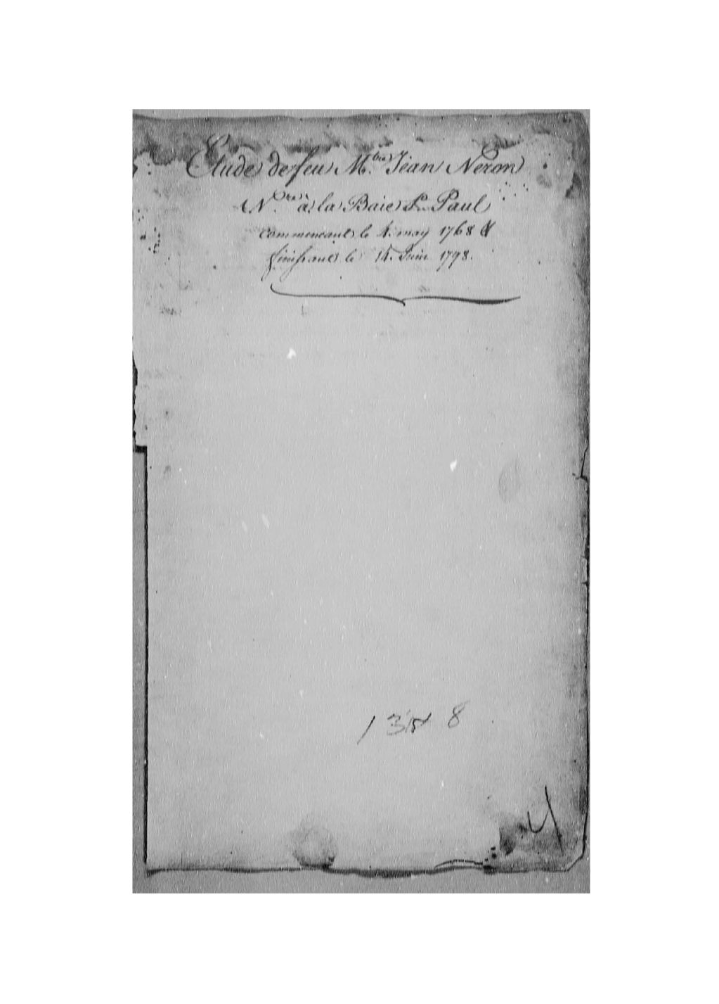 Jean Néron, 1768-1798, Archives nationales à Québec, Fonds Cour supérieure. District judiciaire de Saguenay. Greffes de notaires, (03Q,CN304,S16).