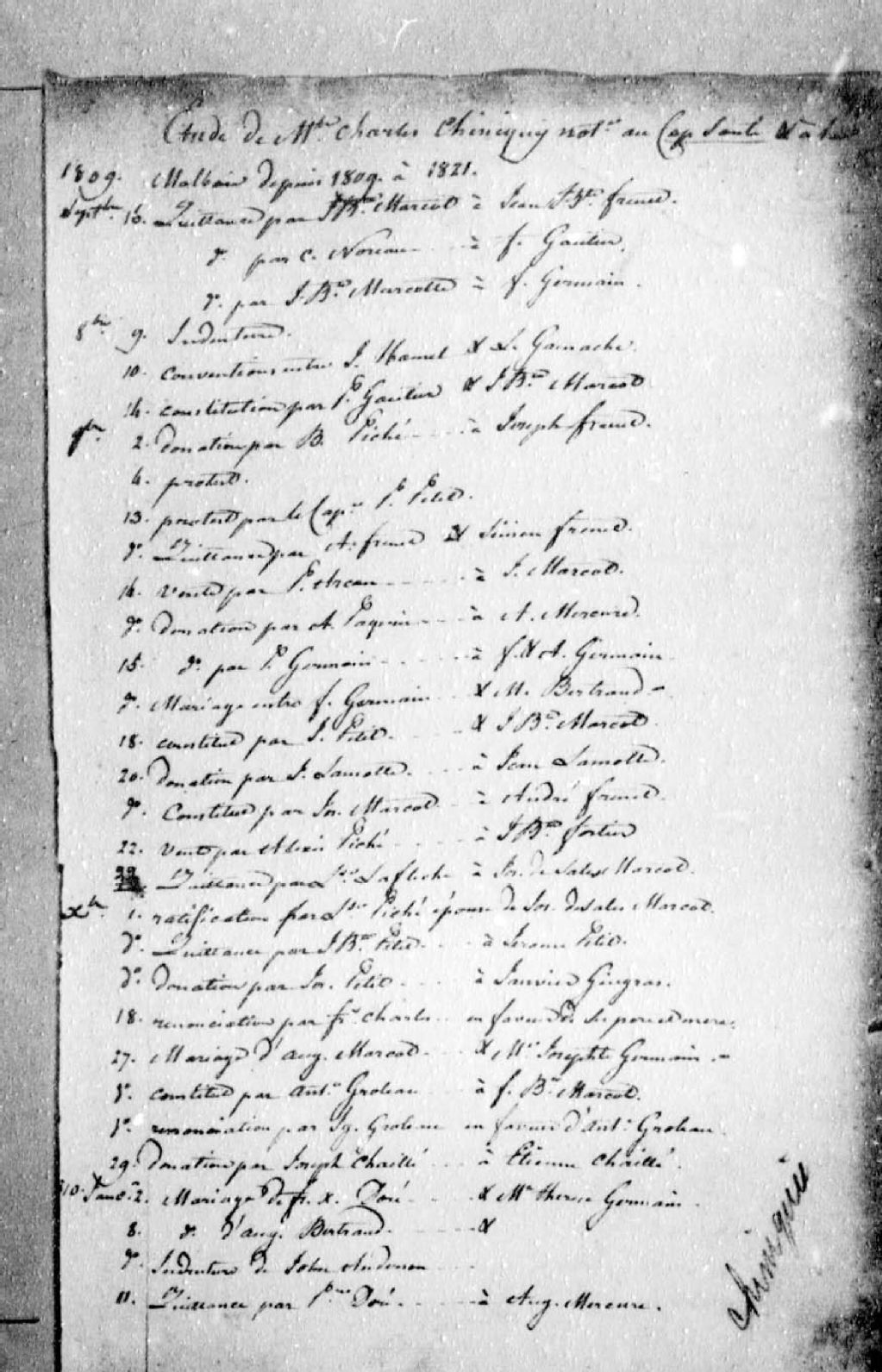 Charles Chiniquy, 1809-1821, Archives nationales à Québec, Fonds Cour supérieure. District judiciaire de Saguenay. Greffes de notaires, (03Q,CN304,S2).