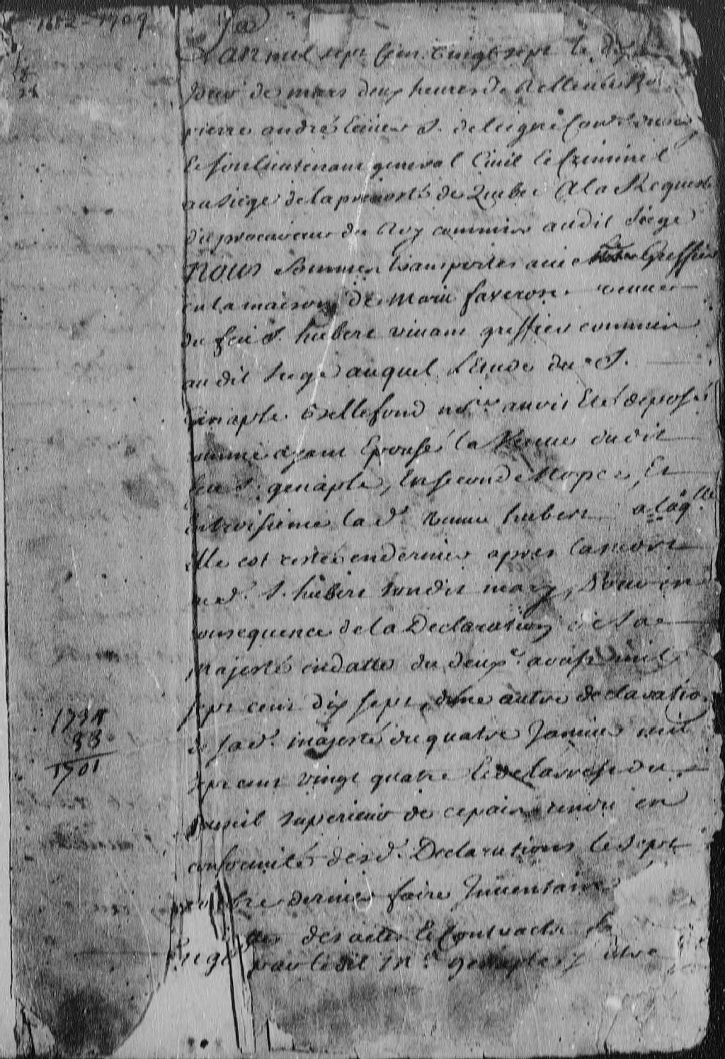 François Genaple, 1682-1709, Archives nationales à Québec, Fonds Cour supérieure. District judiciaire de Québec. Greffes de notaires, (03Q,CN301,S114).