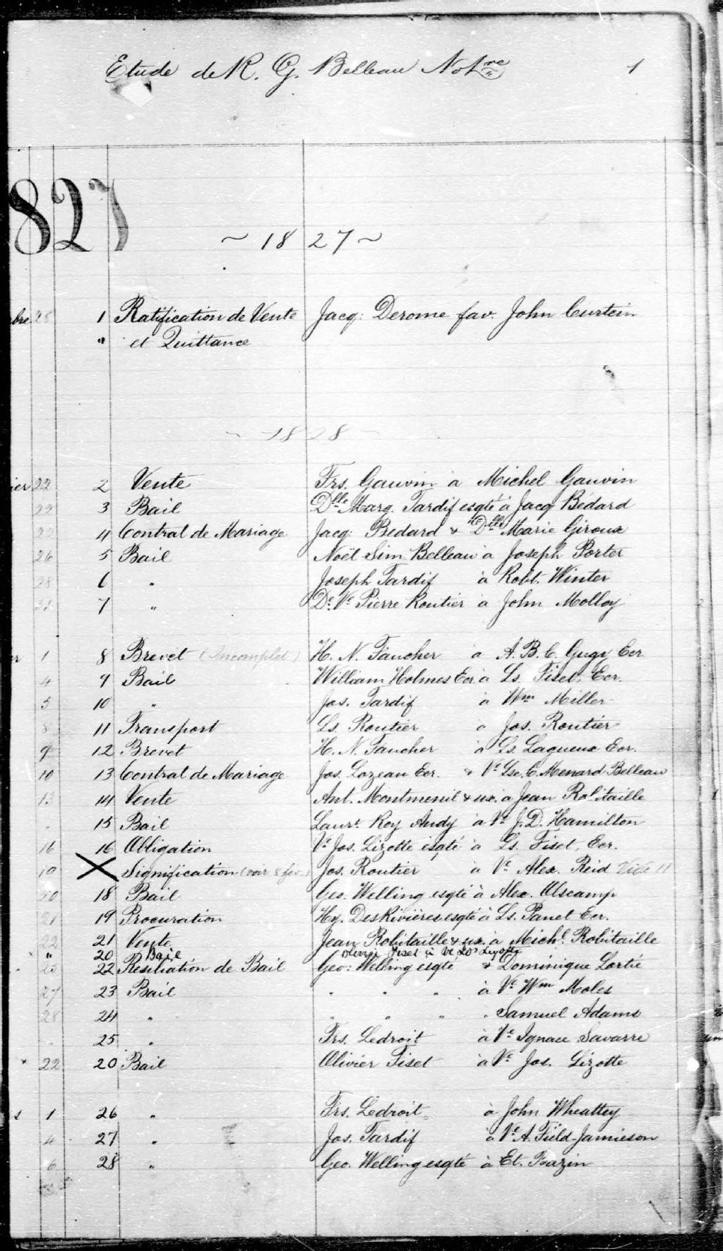 - René-Gabriel Belleau a pratiqué le notariat à Québec du 28 décembre 1827 au 5 mars 1866. Archives architecturales : parmi les cinq plans d'architecture de ce greffe, on compte un plan d'un quai et des plans d'élévation et de surface de différentes maisons situées dans Québec.Archives cartographiques : les douze plans du greffe sont pour la plupart couleur, de petite et moyenne dimensions. Très détaillés, ils sont tous à grande échelle et couvrent un ou quelques lots, avec les noms des propriétaires et les éléments de l'aménagement du sol