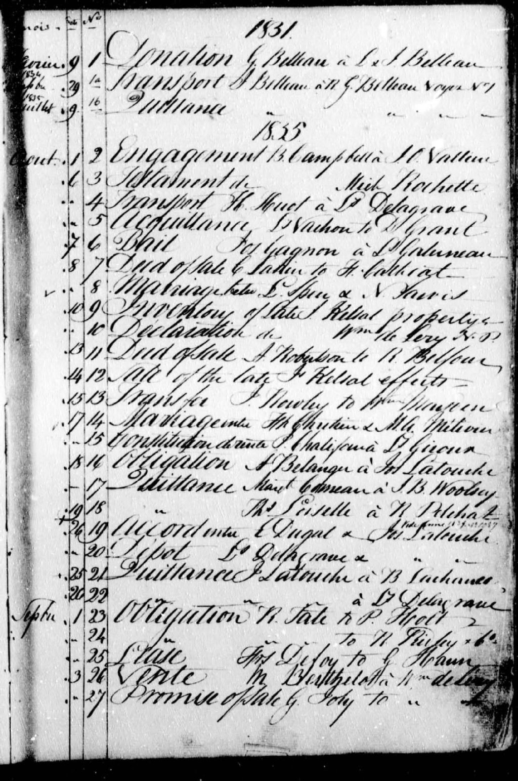 Alexandre-Benjamin Sirois Duplessis, 1830, 1831-1876, Archives nationales à Québec, Fonds Cour supérieure. District judiciaire de Québec. Greffes de notaires, (03Q,CN301,S255).