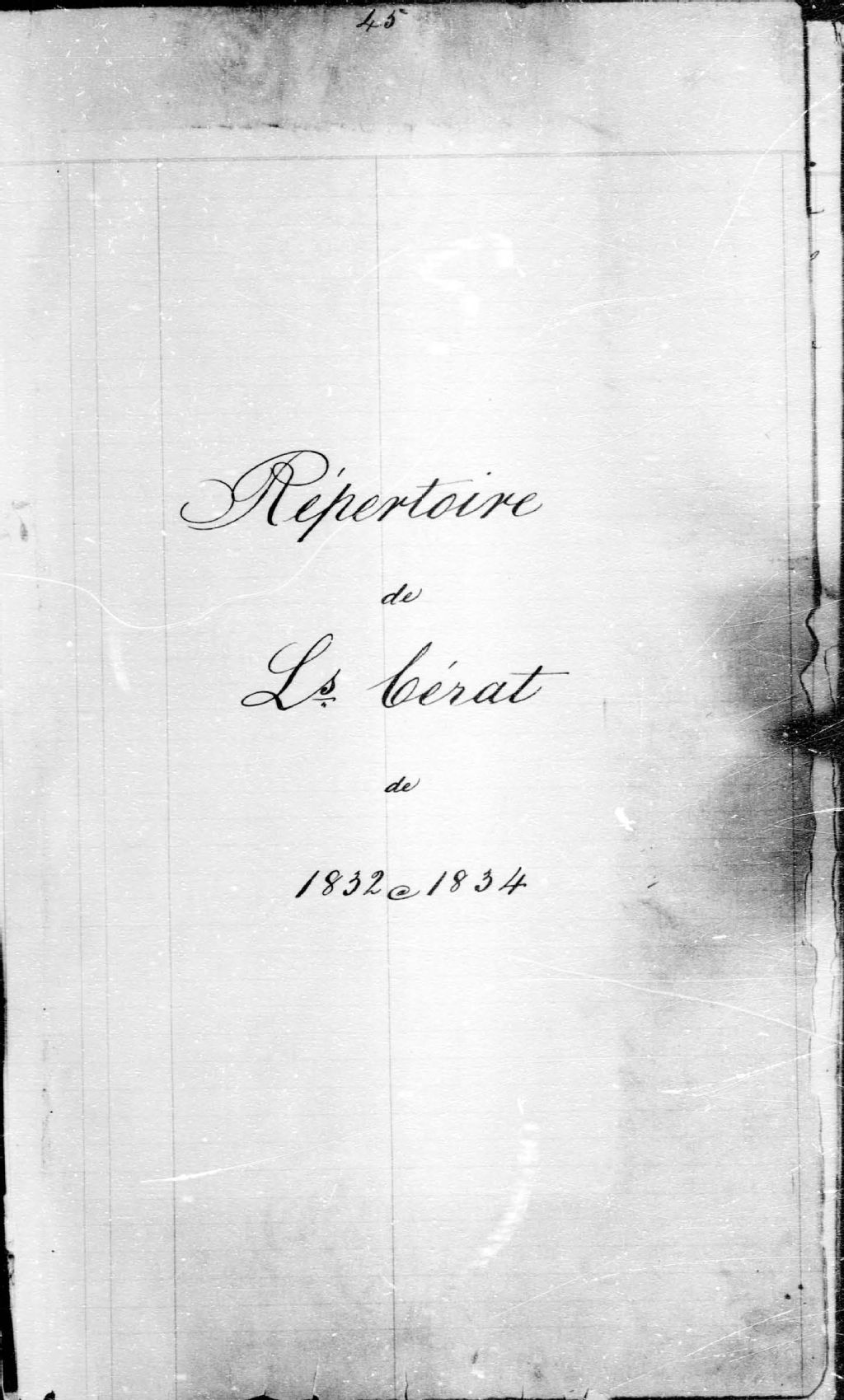 Louis Cérat, 1832-1834, Archives nationales à Québec, Fonds Cour supérieure. District judiciaire de Québec. Greffes de notaires, (03Q,CN301,S57).