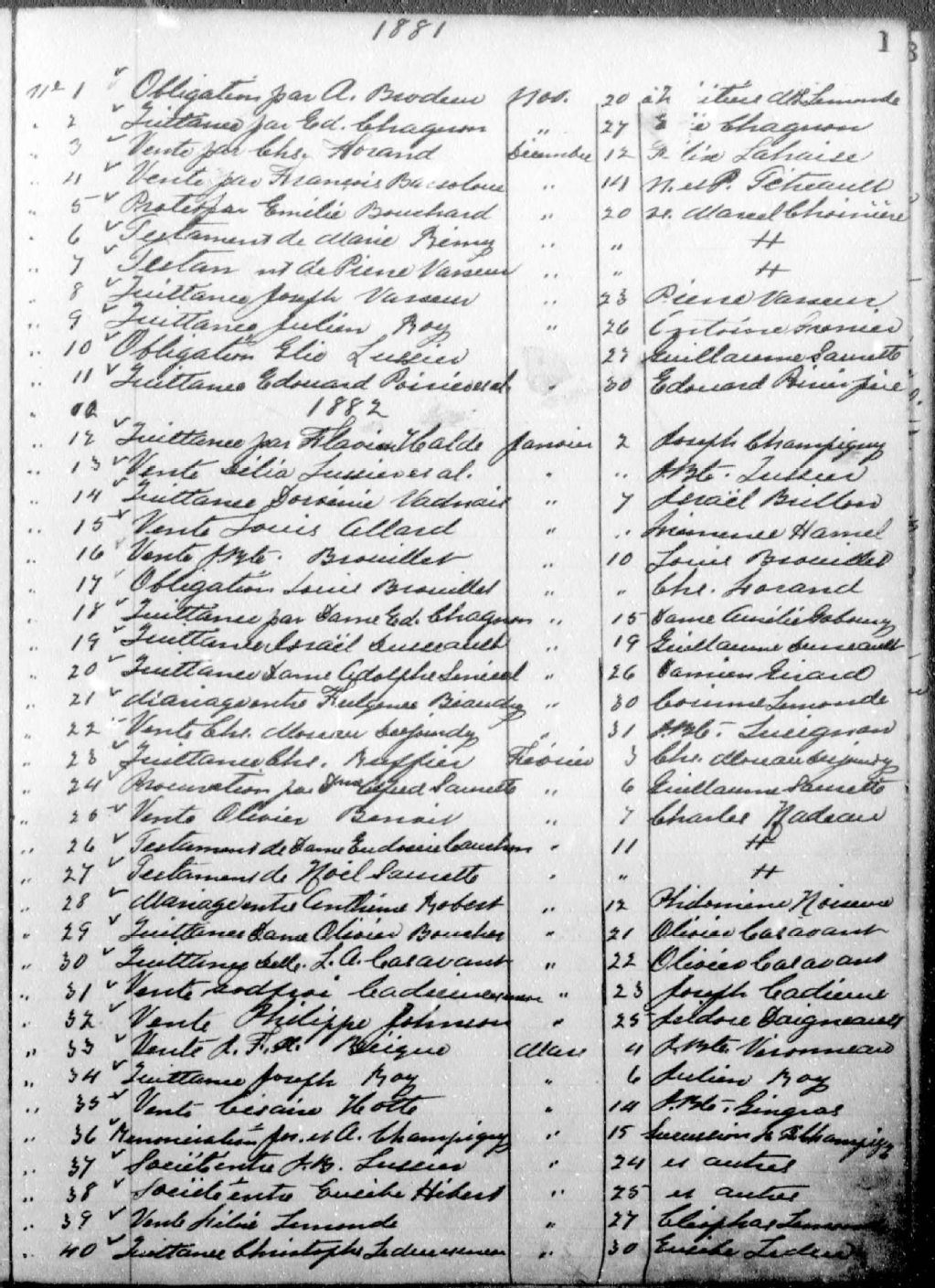Misaël Halde, 1881-1910, Archives nationales à Montréal, Fonds Cour supérieure. District judiciaire de Saint-Hyacinthe. Greffes de notaires, (06M,CN602,S100).