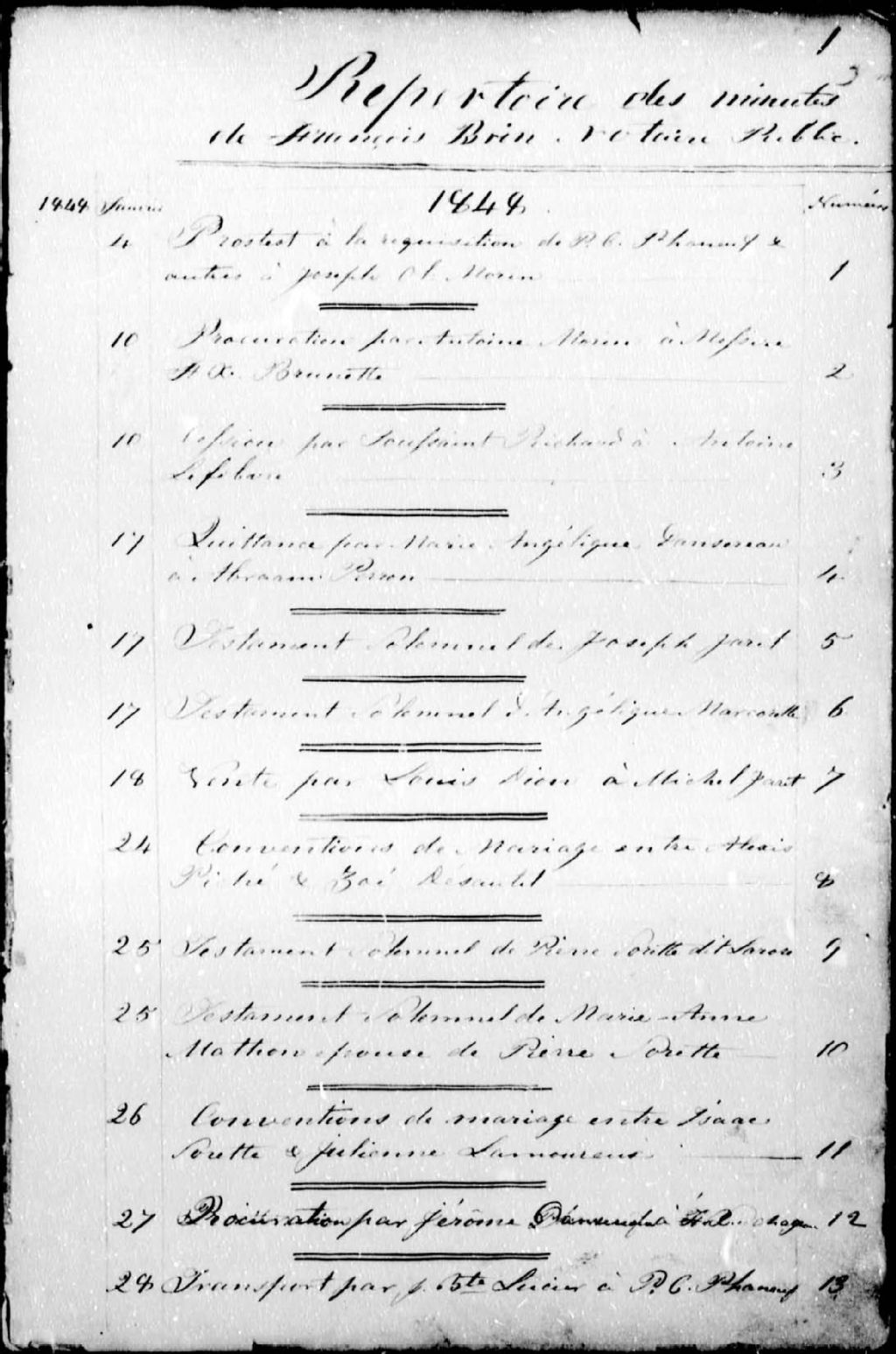 François Brin, 1834-1872, Archives nationales à Montréal, Fonds Cour supérieure. District judiciaire de Saint-Hyacinthe. Greffes de notaires, (06M,CN602,S13).