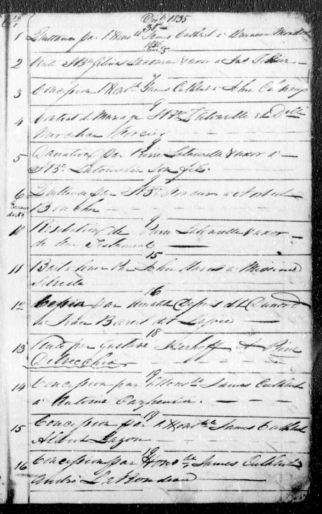 Norbert Doucet, 1835-1870, Archives nationales à Montréal, Fonds Cour supérieure. District judiciaire de Richelieu. Greffes de notaires, (06M,CN603,S38).