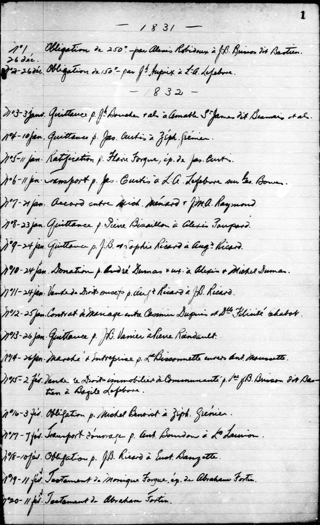 Alexis Delaunay, 1831-1852, Archives nationales à Montréal, Fonds Cour supérieure. District judiciaire de Montréal. Greffes de notaires, (06M,CN601,S118).