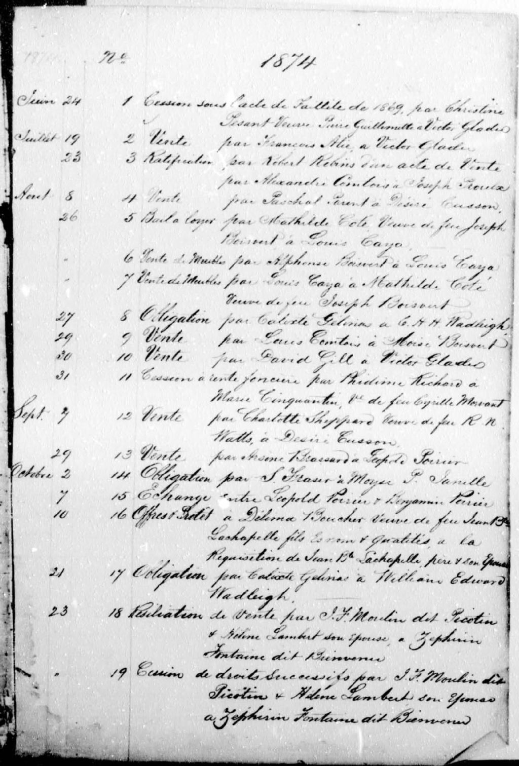Augustin-Ernest Gladu, 1874-1904, Archives nationales à Montréal, Fonds Cour supérieure. District judiciaire de Richelieu. Greffes de notaires, (06M,CN603,S50).