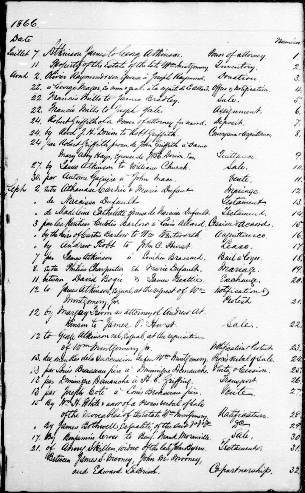Victor Gladu, 1866-1897, Archives nationales à Montréal, Fonds Cour supérieure. District judiciaire de Richelieu. Greffes de notaires, (06M,CN603,S51).