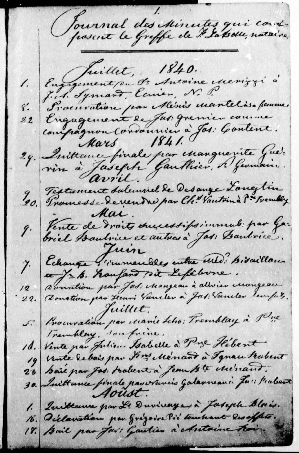 Félix Labelle, 1840-1885, Archives nationales à Montréal, Fonds Cour supérieure. District judiciaire d'Iberville. Greffes de notaires, (06M,CN604,S25).