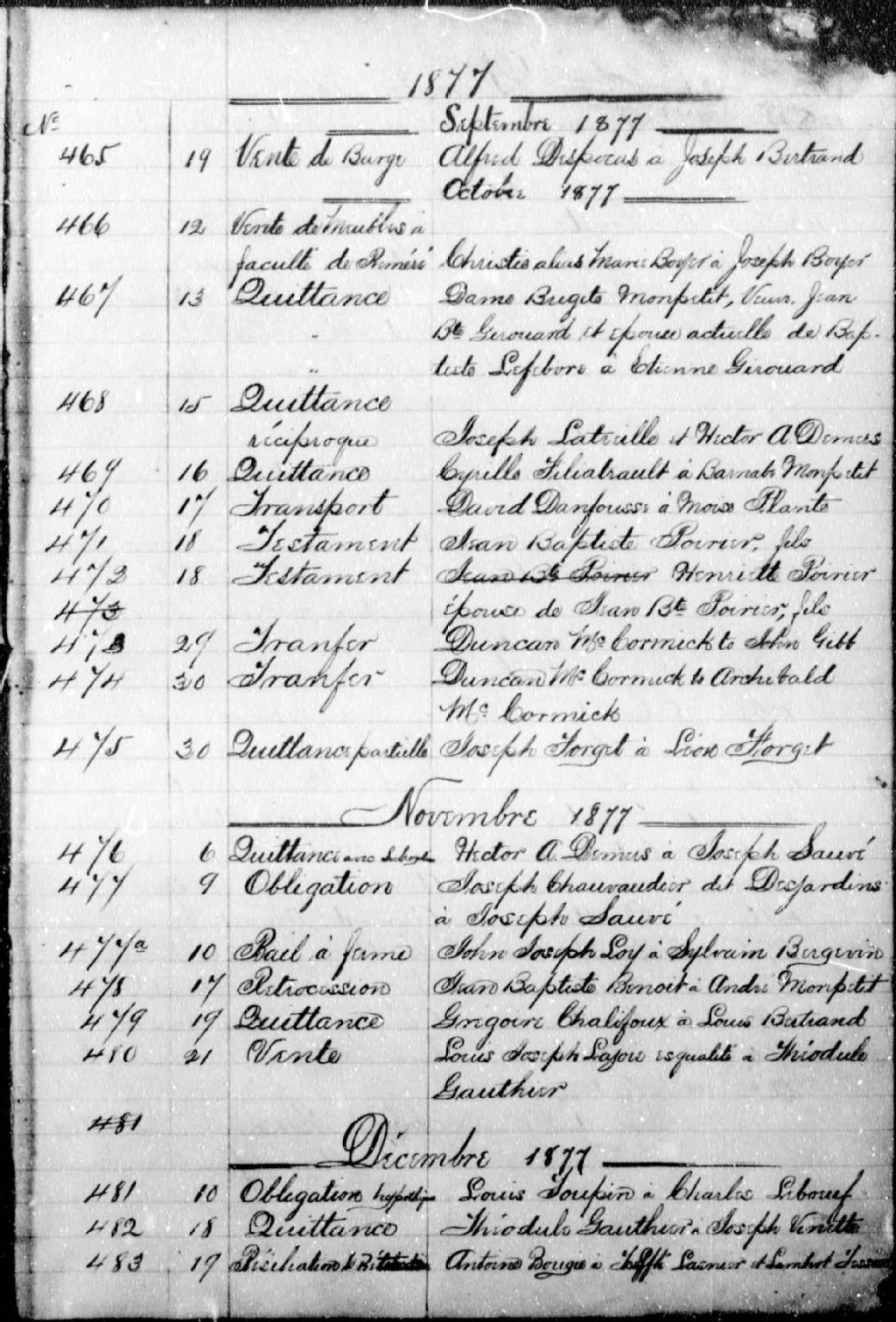 Solyme-Auguste Brodeur, 1874-1892, Archives nationales à Montréal, Fonds Cour supérieure. District judiciaire de Beauharnois. Greffes de notaires, (06M,CN607,S8).