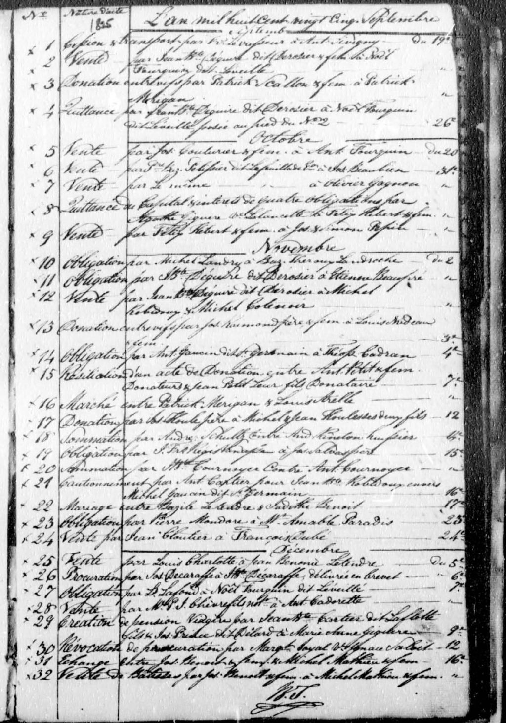 Benjamin Therrien, 1825-1879, Archives nationales à Montréal, Fonds Cour supérieure. District judiciaire de Richelieu. Greffes de notaires, (06M,CN603,S85).
